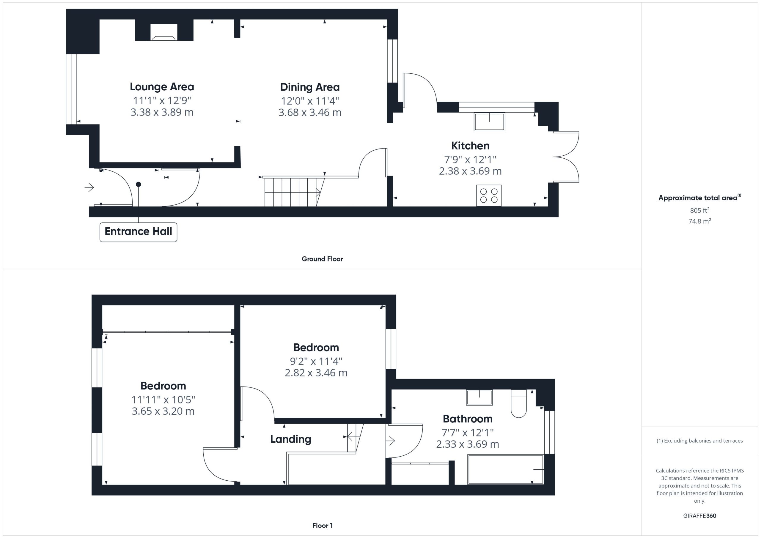 Stairs lead up to the first floor landing. There are two bedrooms. Bedroom one has a range of built in wardrobes. The spacious bathroom features a wc, basin and bath with shower over.
