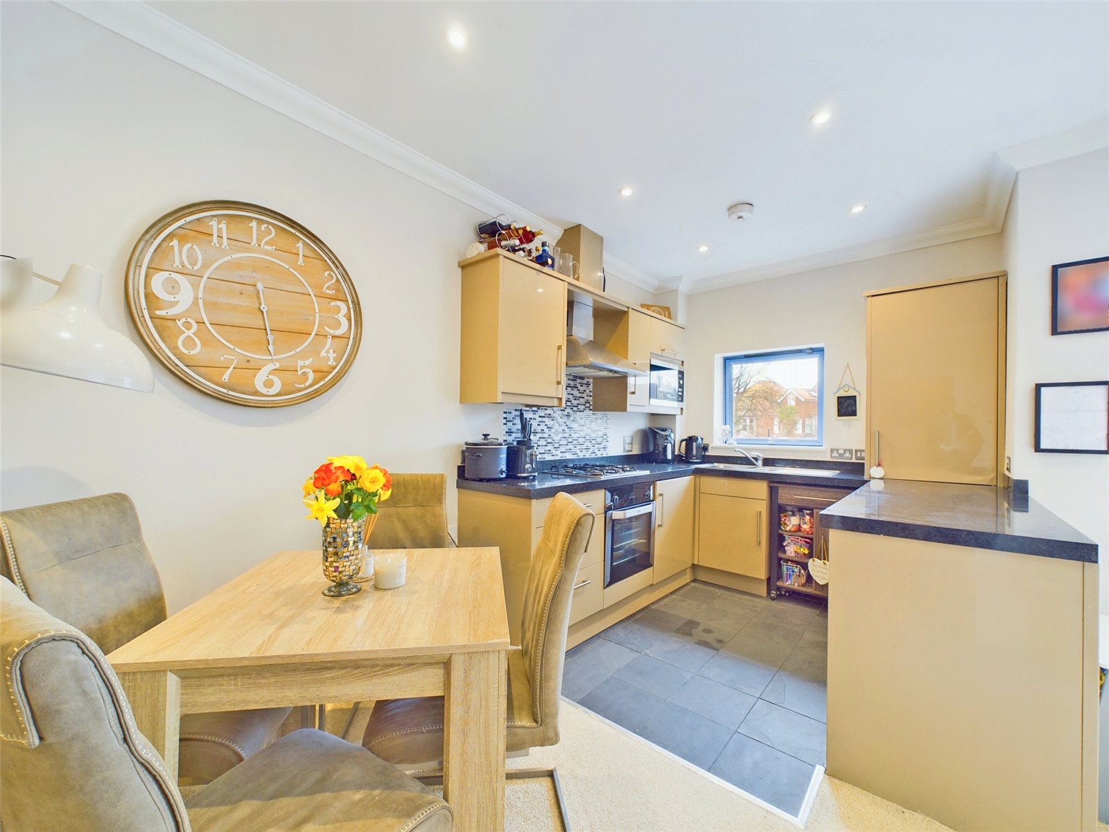 The open-plan living space overlooks the front of building and cleverly blends cooking, dining and living areas whilst also offering access onto the good sized westerly facing balcony. The kitchen has been fitted with an array of eye level and base units set above and below the work surfaces whilst also incorporating built in appliances and white goods.