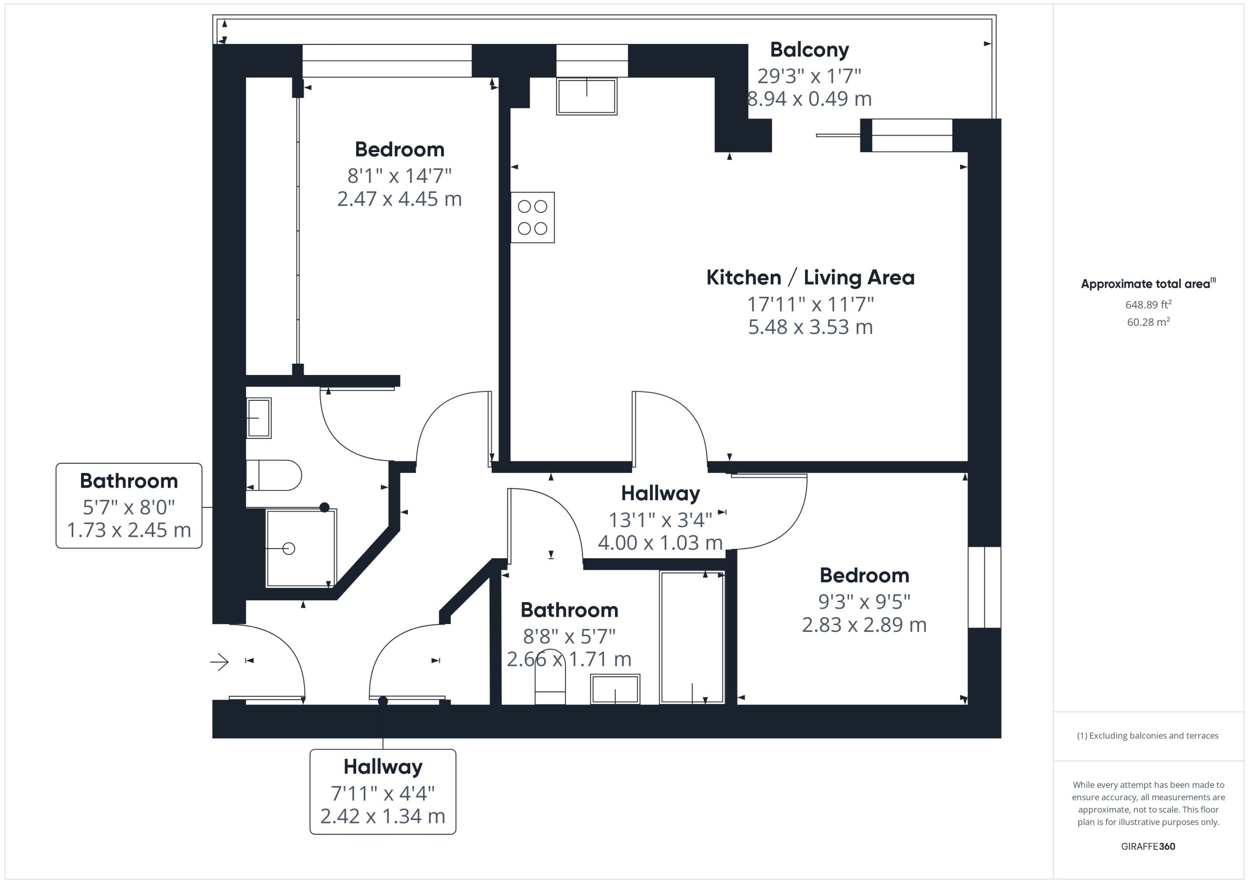 The apartment is well presented and modern throughout benefitting from double glazing and underfloor heating along with a generously sized open-plan Kitchen/living area, two double bedrooms, two bath/shower rooms and a good sized balcony along as well as allocated off road parking.