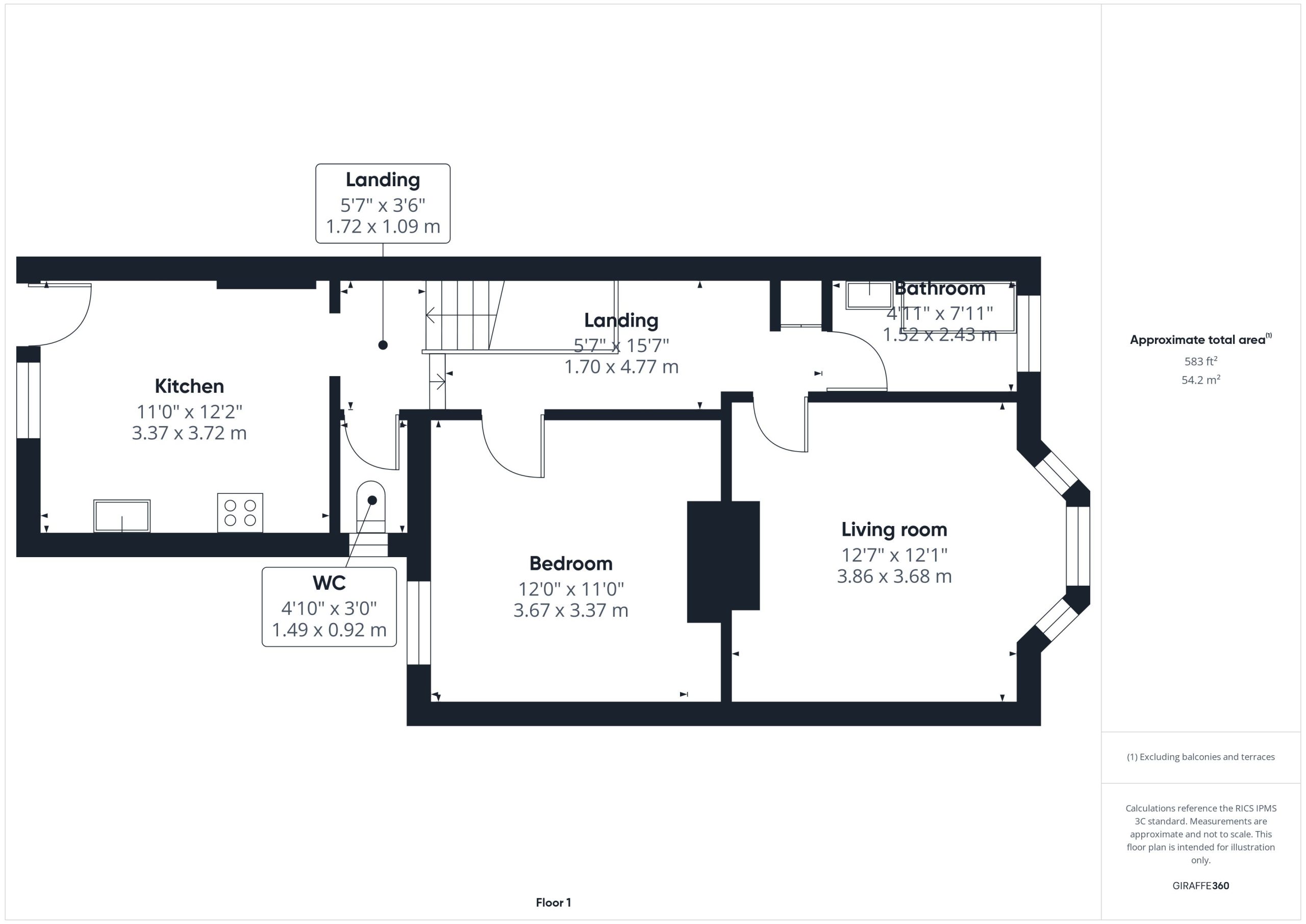 The bedroom is a good double and is served by a white bathroom suite equipped with a bath, wash hand basin and a separate WC.