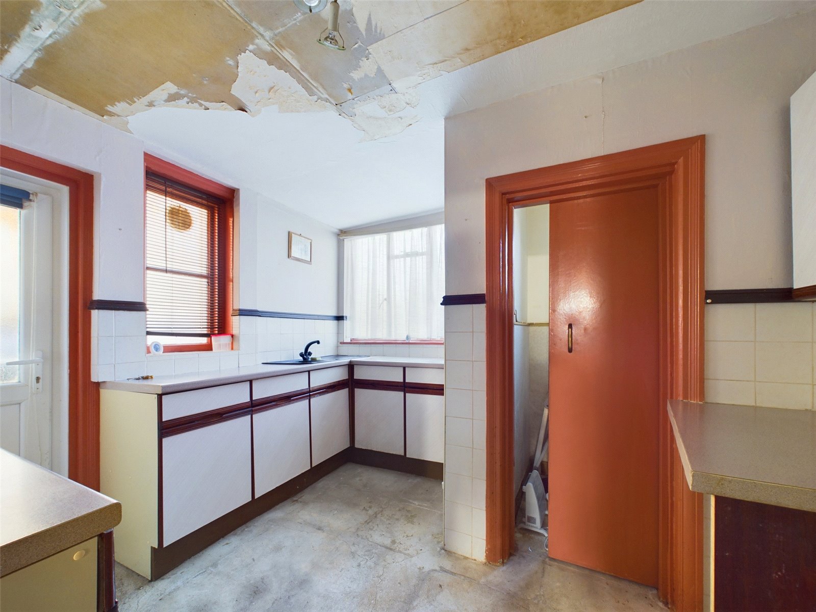 Set to the rear overlooking the garden, although it could benefit from modernisation, the kitchen is an ample size and has plenty of eye and base level storage units, and also boasts a large store cupboard.