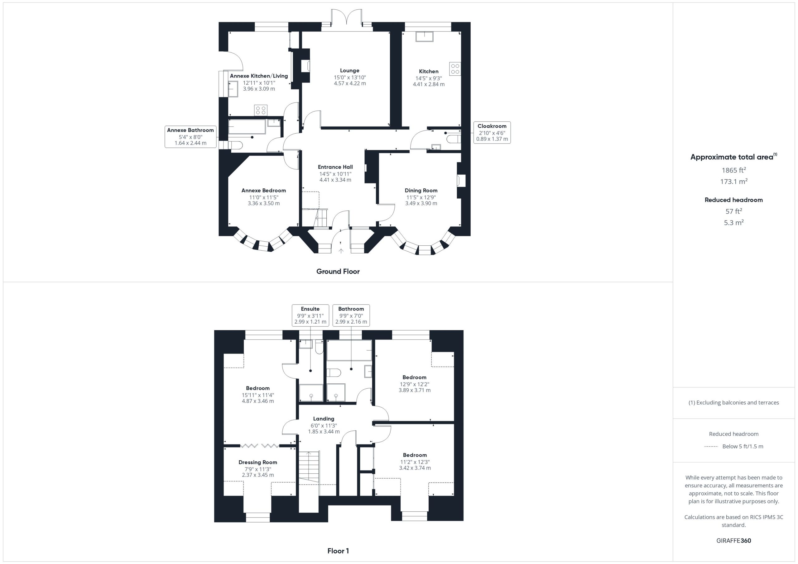 The front door leads into the porch and in turn the entrance hall where there is a door to the cloakroom with wc and basin. The lounge is set to the rear of the property with double doors to the rear garden. There is a separate dining room with a bay window to the front of the property which could be used as a fifth bedroom if required. The kitchen features a range of base and eye level units with some integral appliances. The ground floor accommodation also features an annexe with a living/kitchen area, bedroom and bathroom with wc, basin and bath.