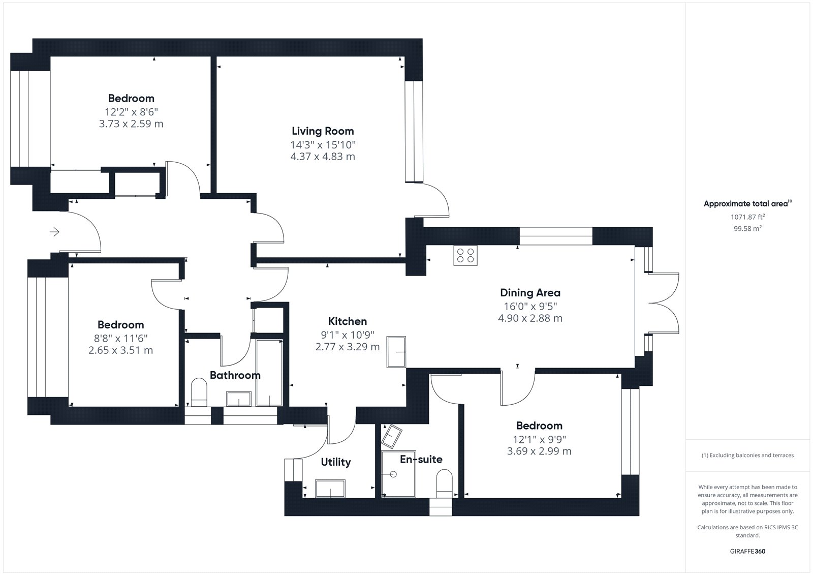 There are three double bedrooms, one of which has built in wardrobes. The master overlooks the garden and has a fully tiled en-suite shower room with an obscured glazed window. It comprises a shower cubicle with electric Mira shower, a WC, a wash hand basin, and has a heated towel rail.