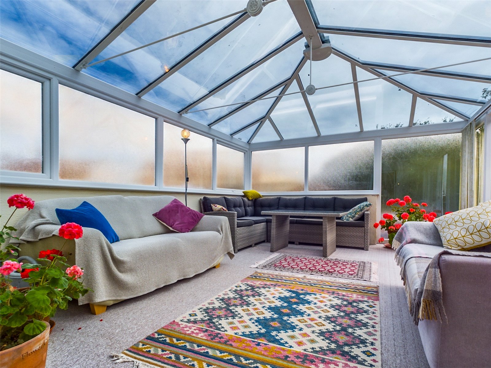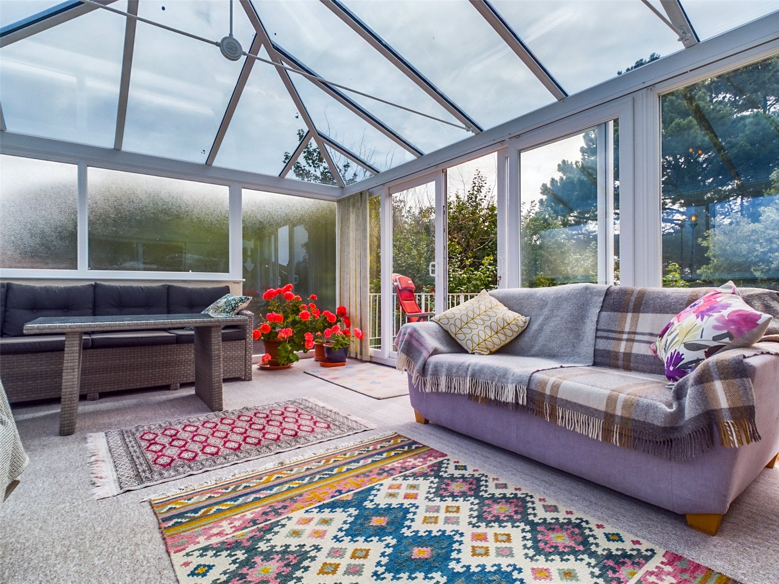 Sliding doors lead into a large conservatory, which has a further set of sliding doors leading out onto the balcony from which you can enjoy the outlook.