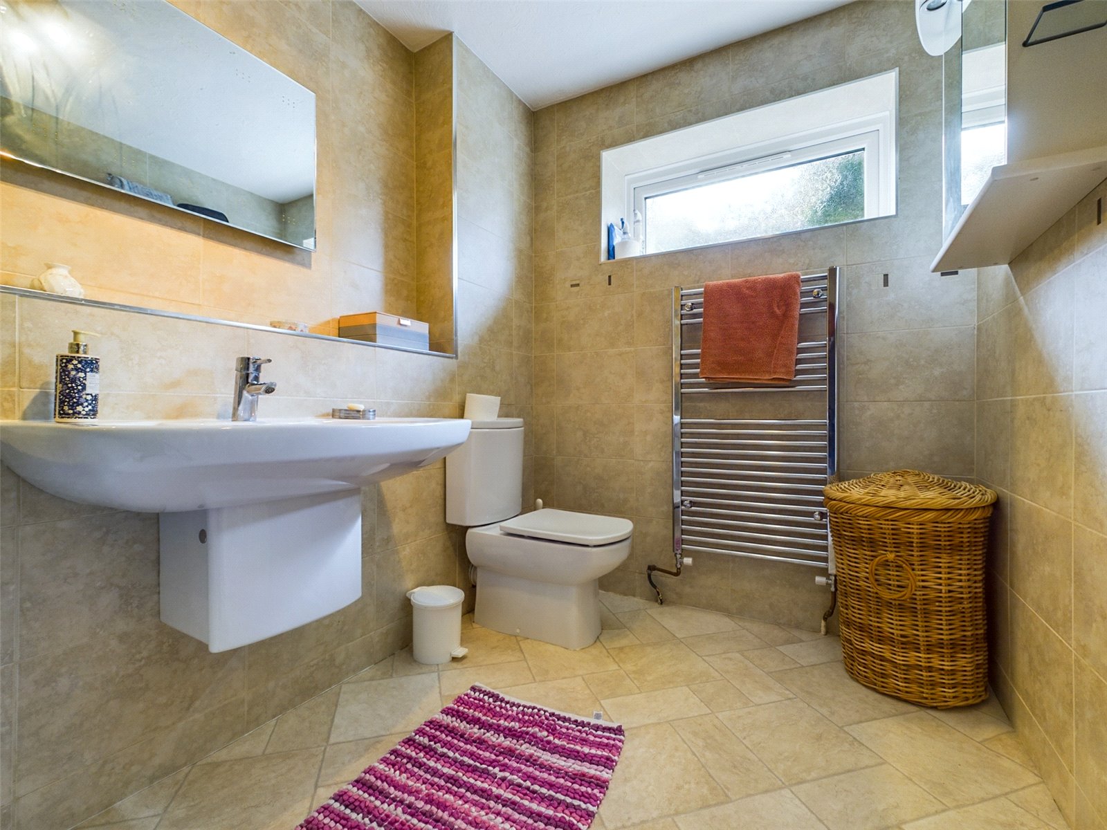 The first floor also has a versatile layout and includes three good sized bedrooms. The master bedroom has a wall of fitted wardrobes, and a modern en-suite comprising a large shower cubicle, wash hand basin, WC, tiled walls and floor a heated towel rail, and has an obscured glazed window.