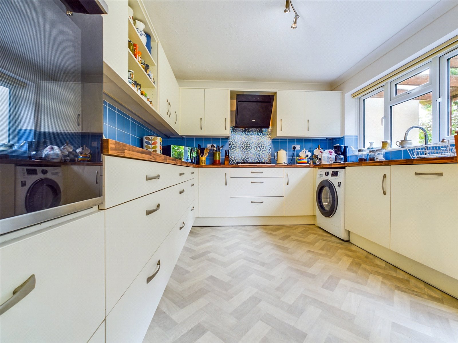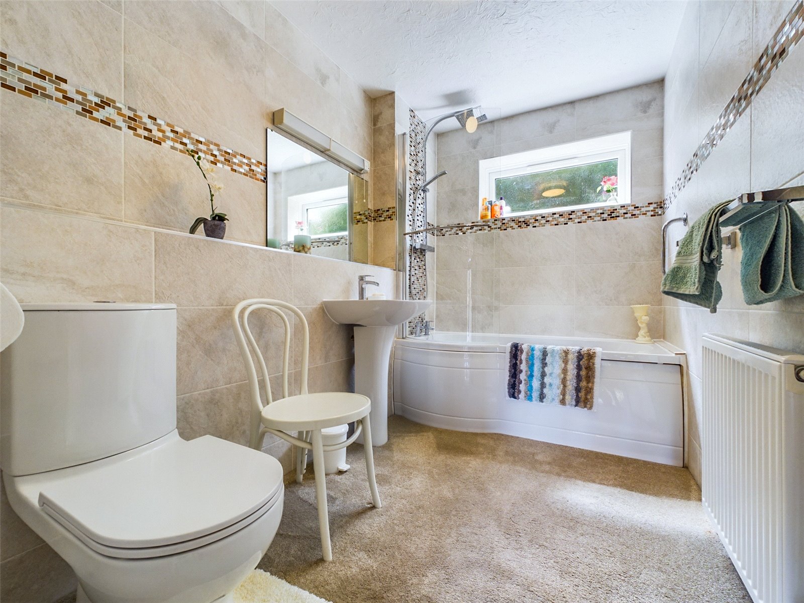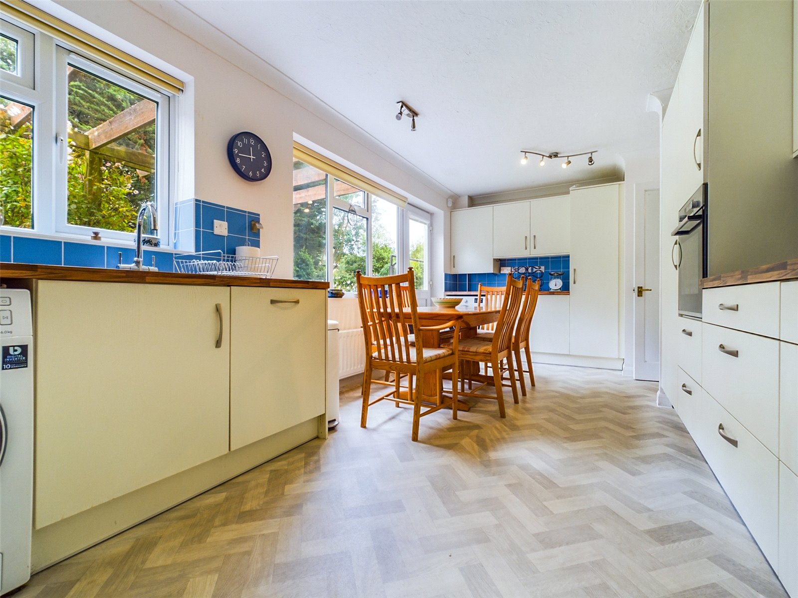 The modernised kitchen breakfast room is located to the rear and has a door in to the rear garden. There is a range of eye and base level units with cupboards and drawers. Inset sink and drainer with mixer tap, Integrated eye level oven, gas hob and extractor, dishwasher and fridge freezer. Space for washing machine and tumble dryer. Wall mounted gas boiler with hot water cylinder located upstairs. There is space for a table and chairs.
