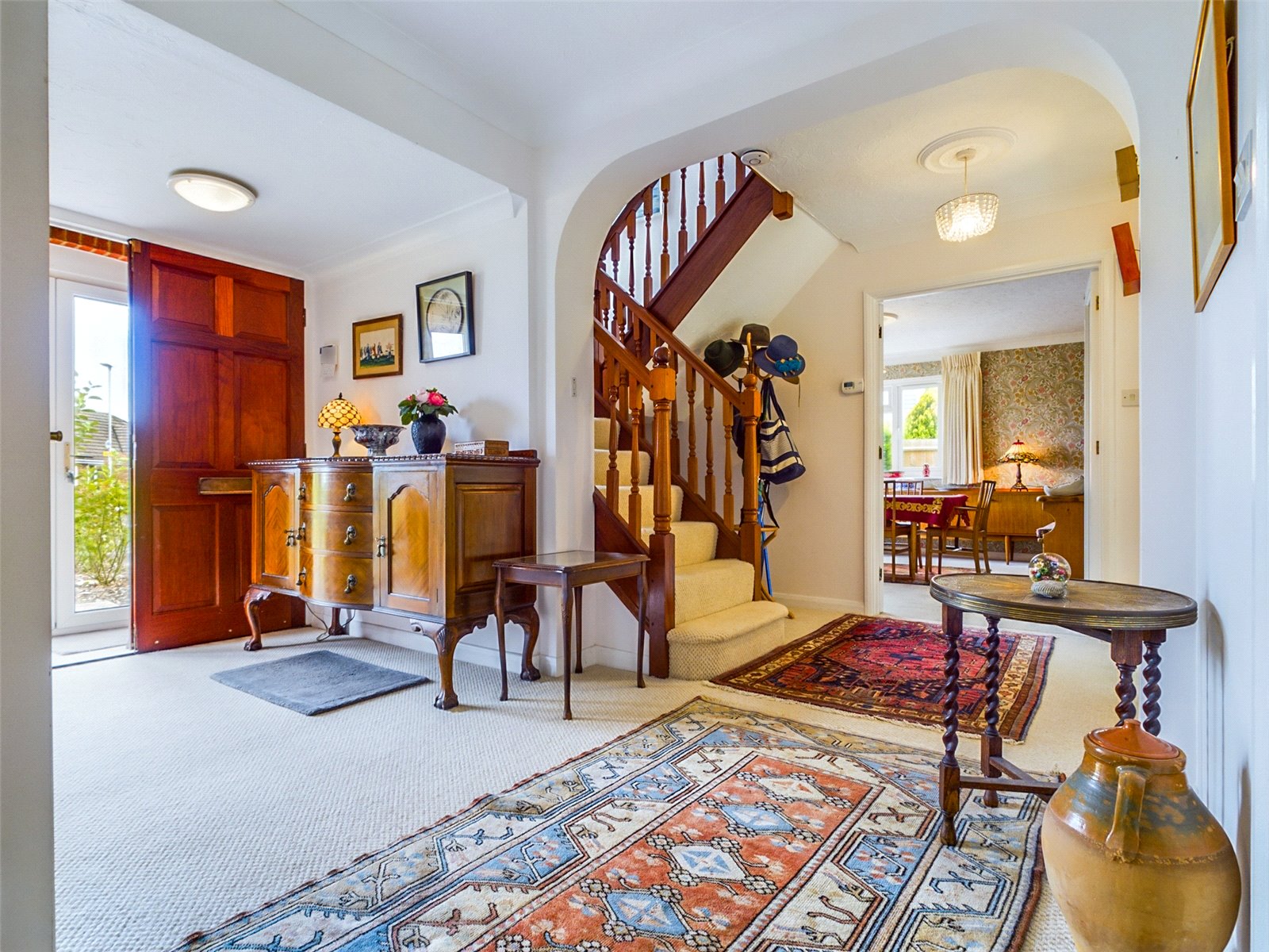 The front garden is laid to lawn, bound by flower beds containing various mature and established shrubs. The driveway provides off road parking for several vehicles and in turn leads to the double garage which has two individual electric roll over doors, power, light, and a rear aspect door to the garden. There is a secured wooden gate providing access down one side.