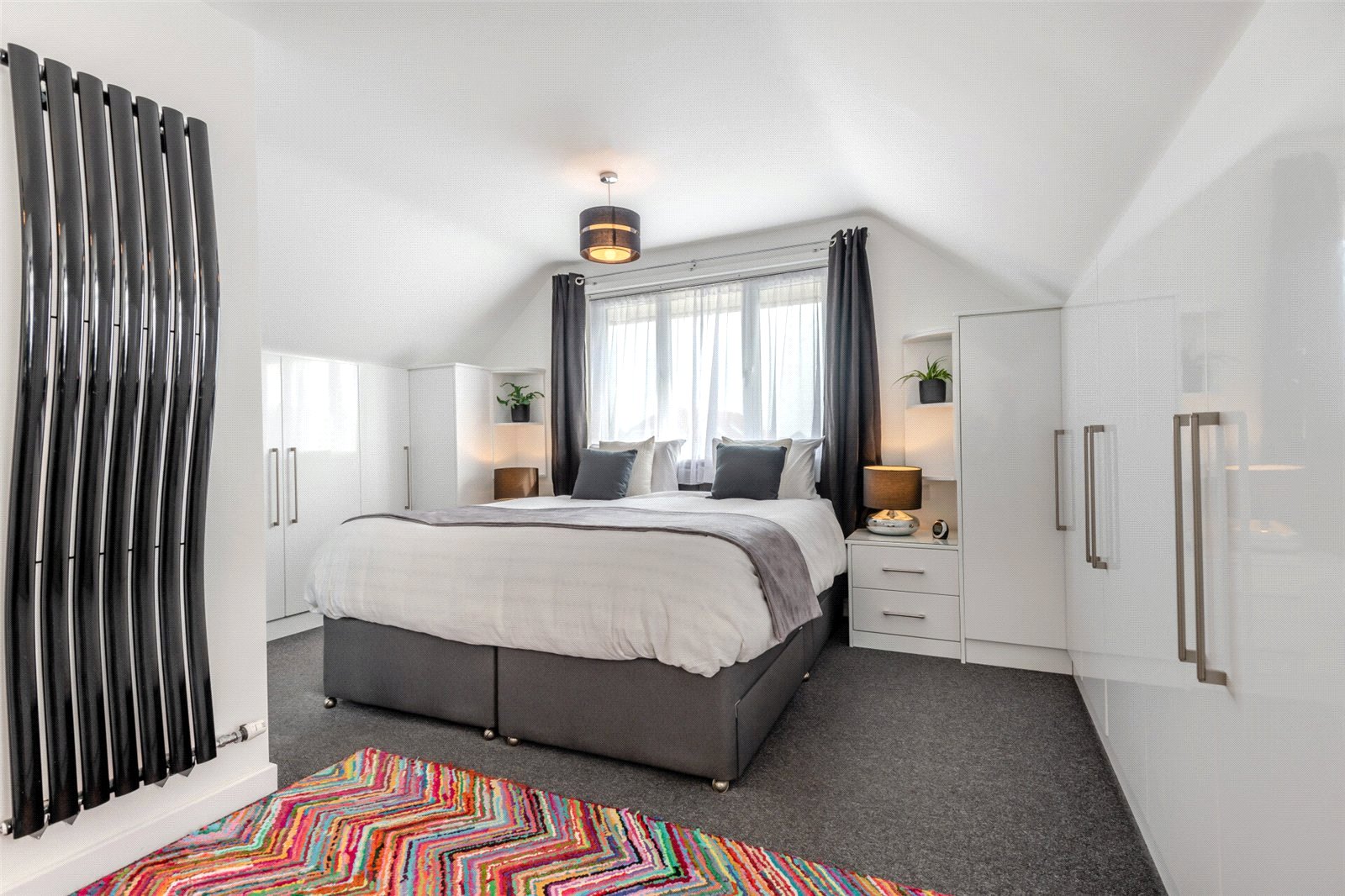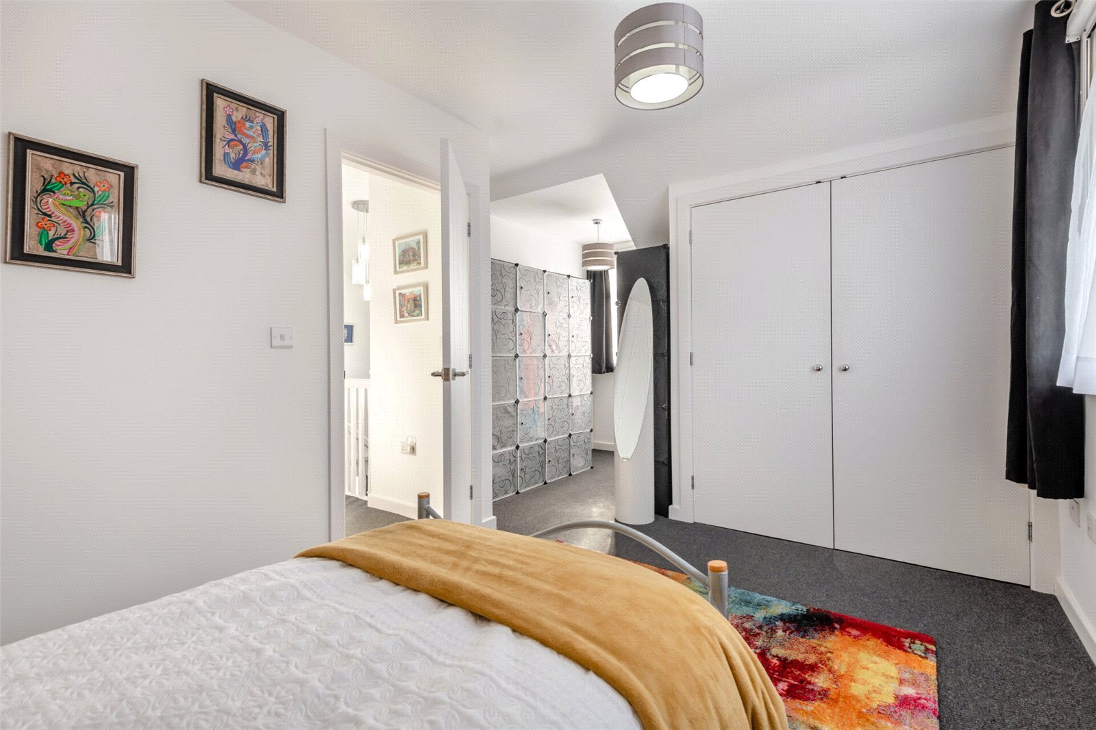 Upstairs, there is a large master-suite with fitted wardrobes, air conditioning for those warmer nights and an incredible ensuite bathroom and a separate WC. The double bedroom to the front has an area that could be used for a customised dressing space.