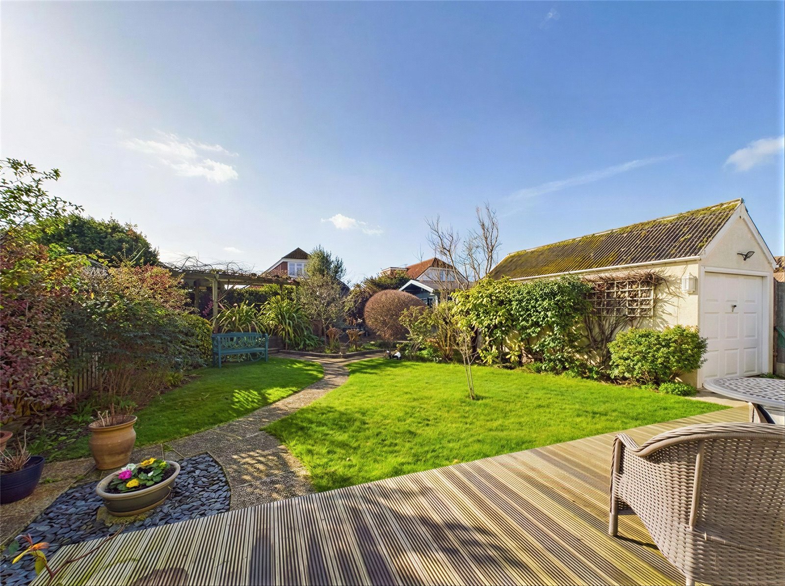 The rear garden can be accessed from both the living room, Kitchen/Breakfast room and utility and has been well landscaped offering a raised decked area immediately abutting the rear, a central lawn area and a paved area to the rear with a garden room set to the rear, offering a good degree of privacy and seclusion.