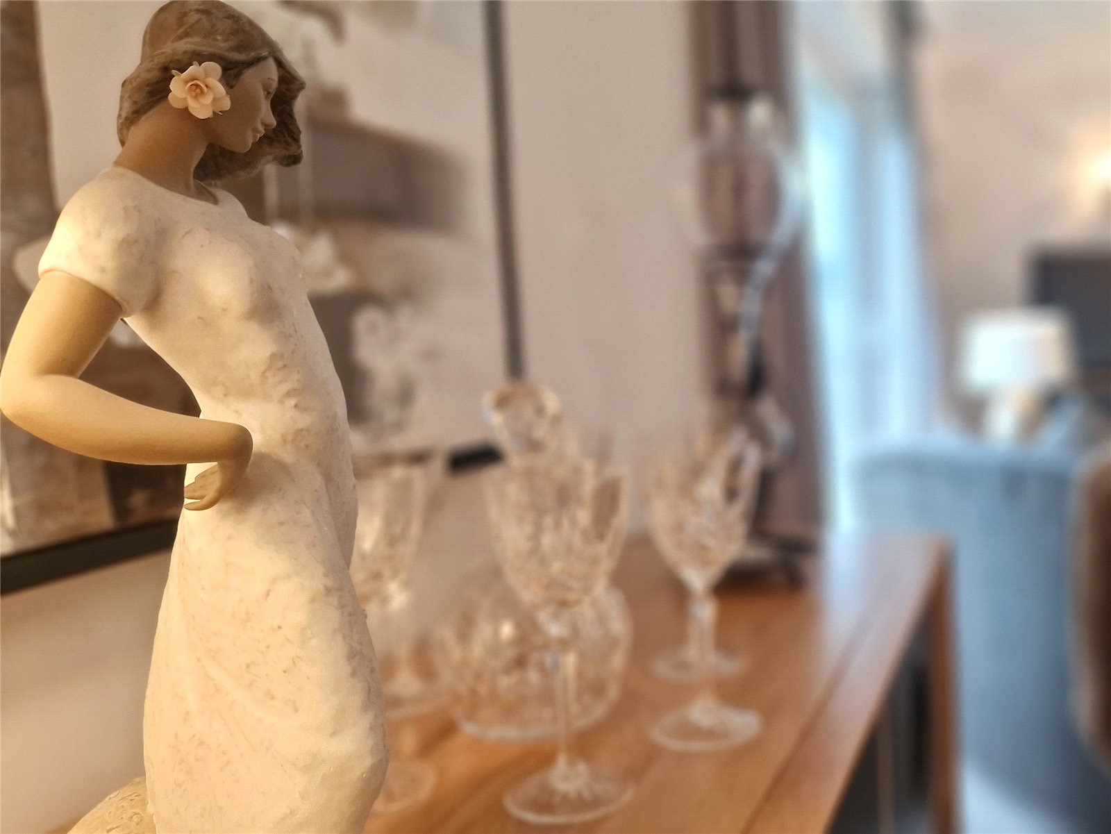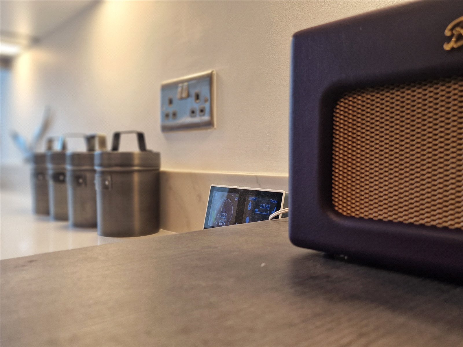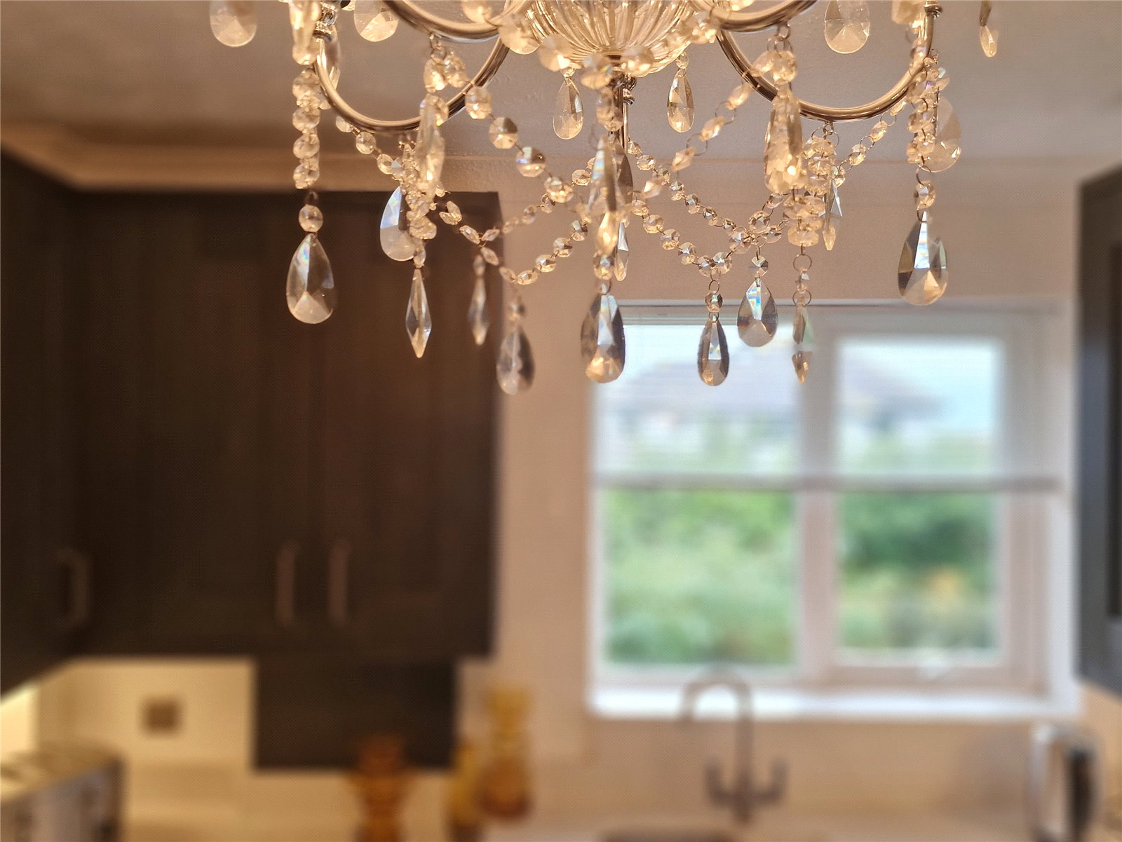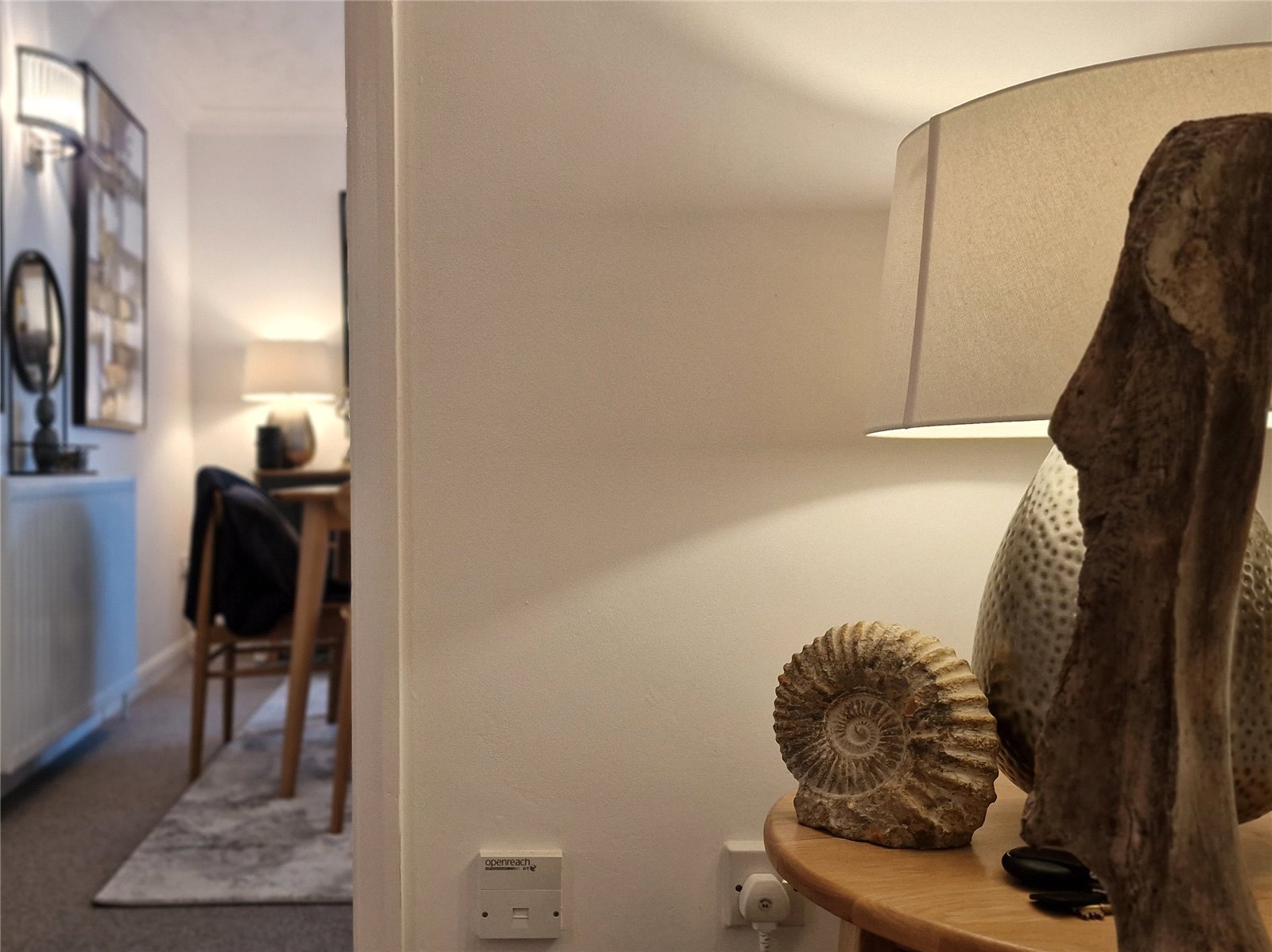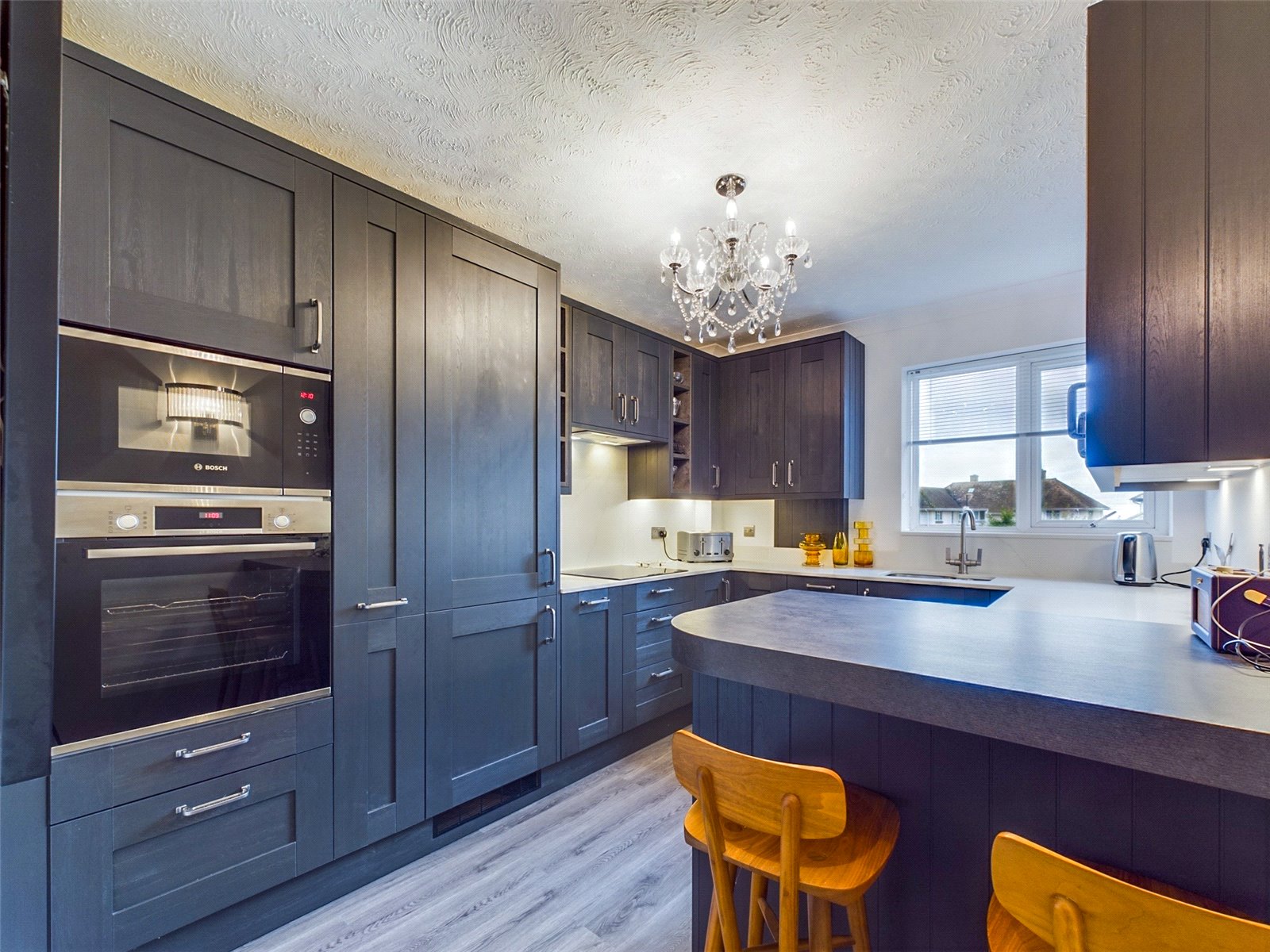 The superbly appointed kitchen, finished to a very high standard with modern, stylish fittings, comprises eye and base level units with Quartz worktops and a breakfast bar. Generous amount of storage with cupboards, drawers, shelves and display cabinets. Integrated oven and microwave, induction hob with extractor, fridge freezer, dishwasher and washing machine. Pleasant outlook from the window with sea glimpses. A cupboard houses the gas combi boiler.