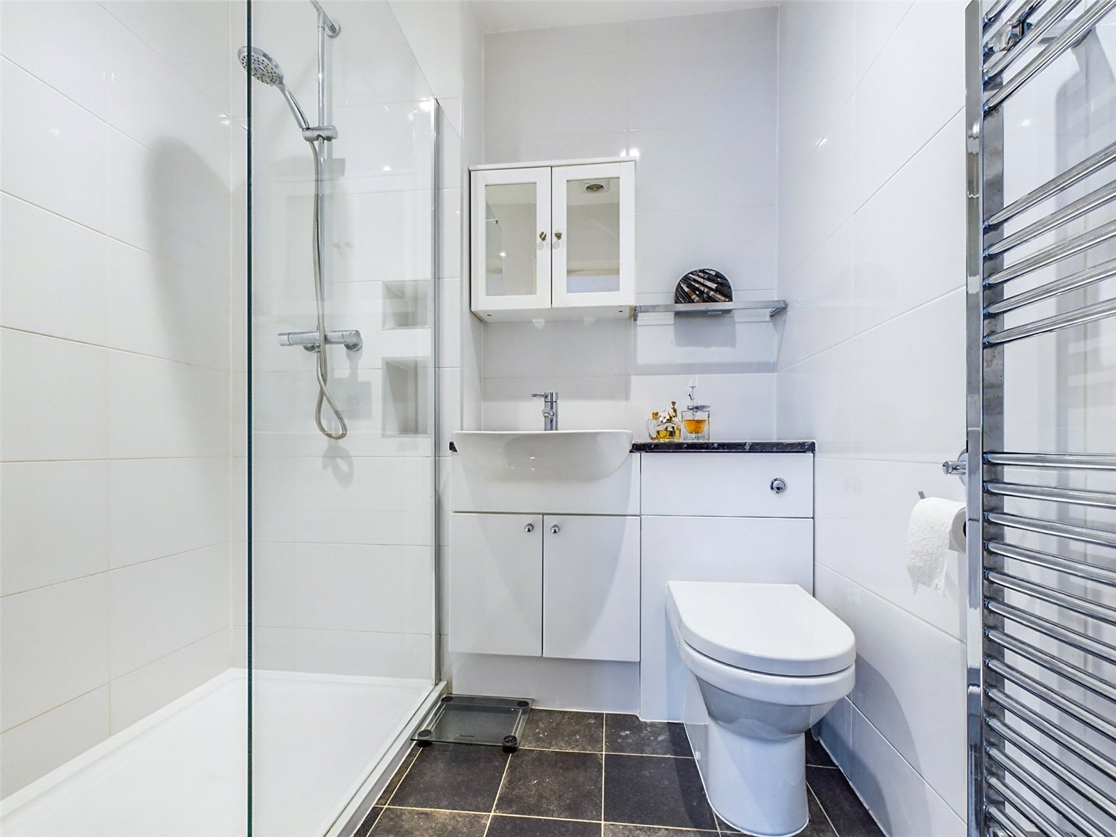 Two double bedrooms, both built in wardrobes. The master is especially spacious, and has lots of space for a super king size bed, side tables and further bedroom furniture. There is a modern en-suite shower room to the master comprising a shower cubicle, wash hand basin and a WC both set into the vanity unit, tiled walls and a heated towel rail.