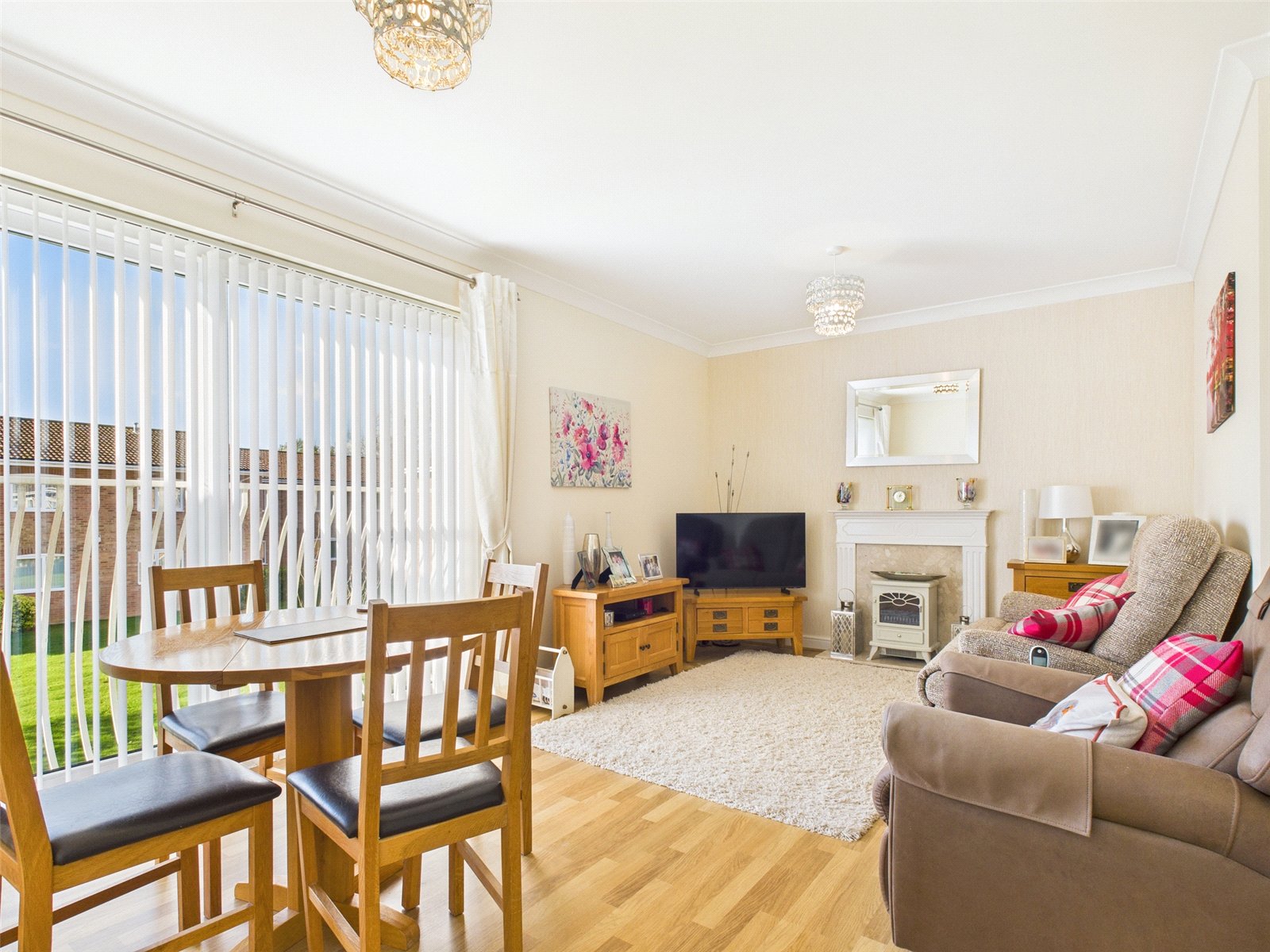 The lounge diner has sliding patio doors with a Juliette balcony and a westerly outlook over the communal grounds.