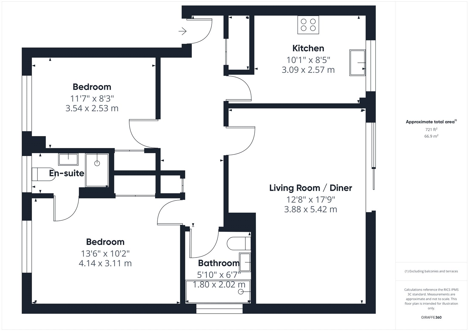 Two double bedrooms, both have fitted wardrobes. the master has a tiled, modern en-suite comprising a shower cubicle, wash hand basin and WC, and has a heated towel rail and a window.