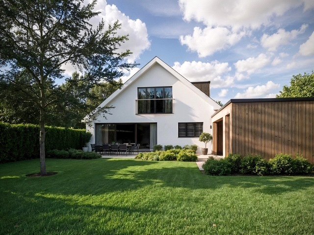 • Driveway access to the side, leading to a garage/garden room at the rear side