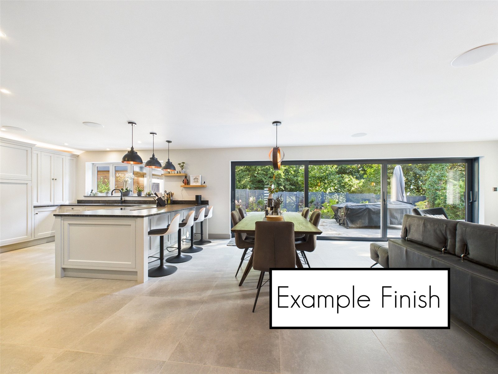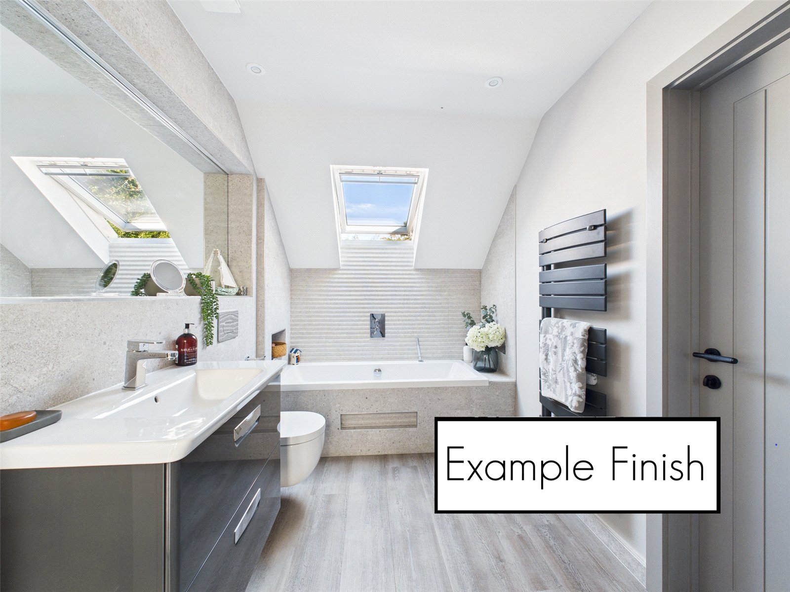 Please note that the CGI images are an indication of the final result and not an exact match. Secondly the 'example' images are of a property that the builder has finished nearby, to give an indication of finish. They are by no means an exact replication of what will be built at the property being sold.