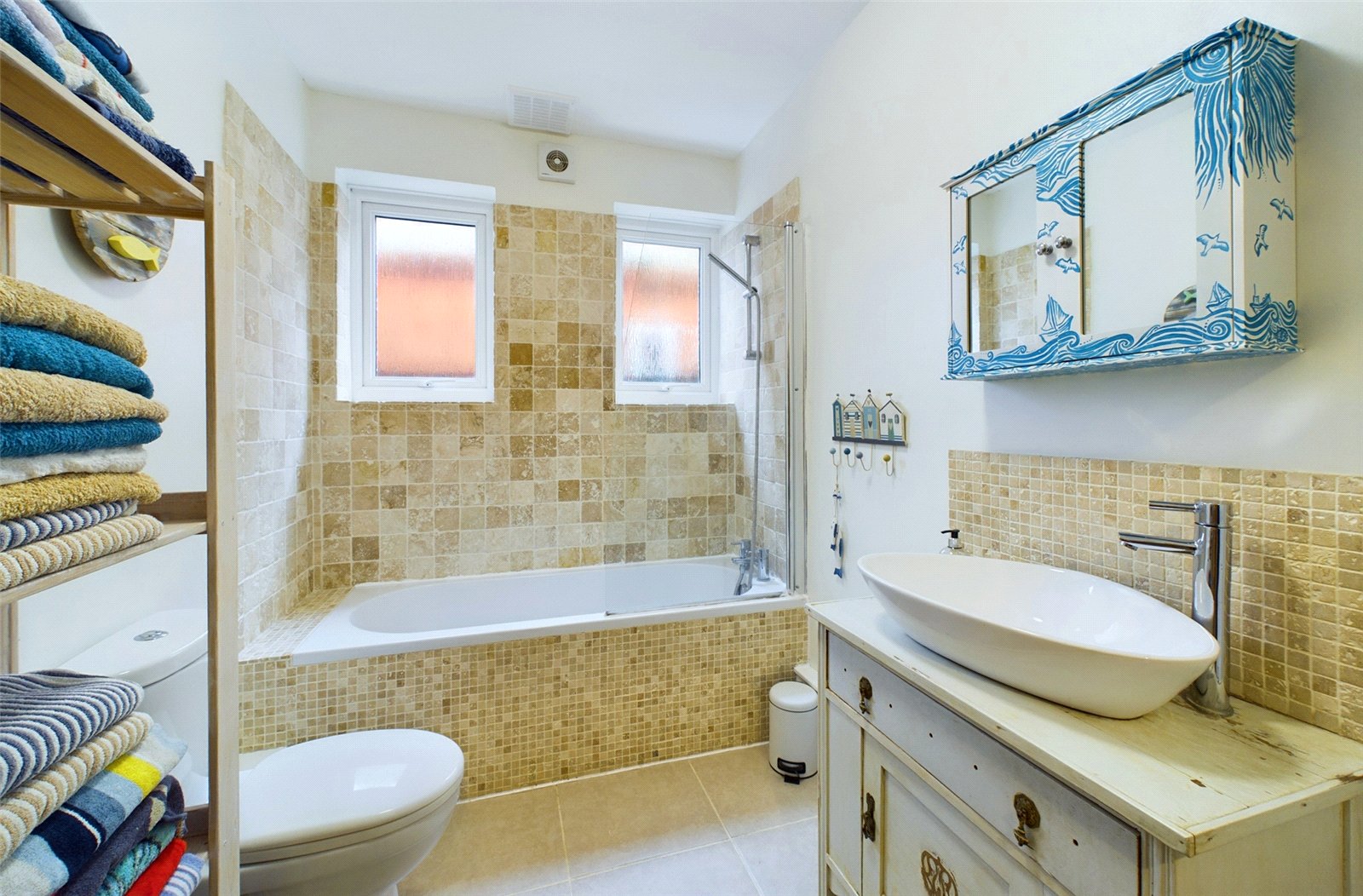 Both bedrooms make for excellent double rooms allowing for an good range of furniture, one of the rooms also arranged with a home office area. Both overlook the front of property and feature fitted shutters.