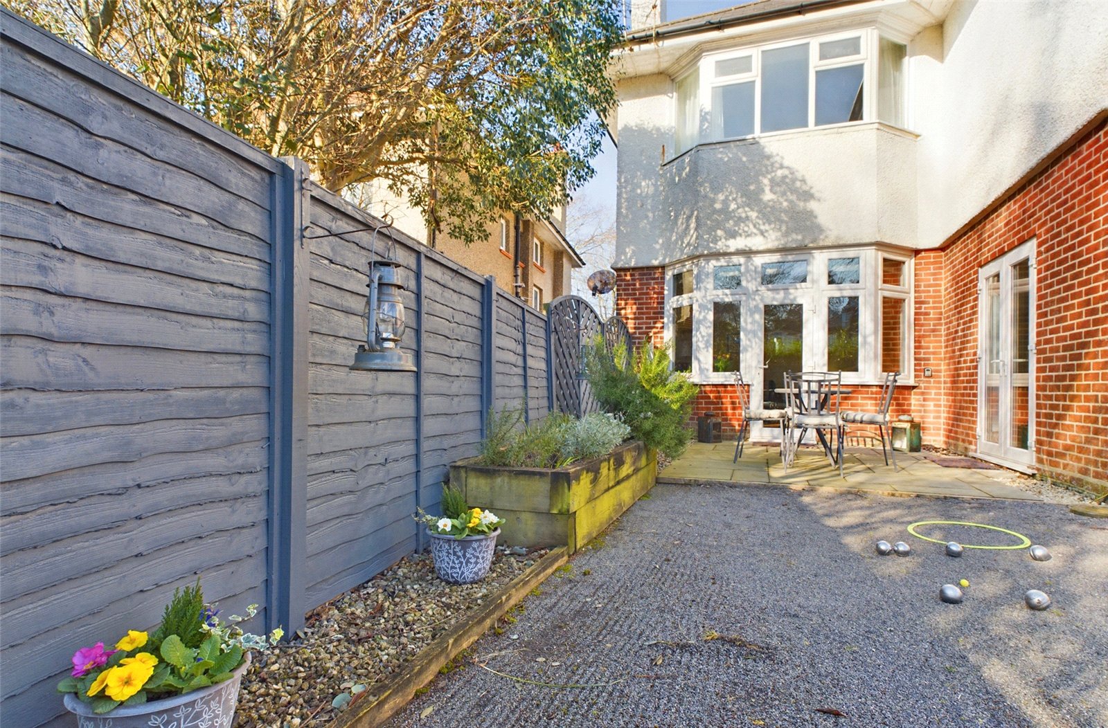 The private rear garden is fully enclosed and has been laid with ease of maintenance in mind. There are two patio areas, one abutting the lounge and dining rooms doors, with the second set to the rear boundary. There is also a Pétanque/Boules Court which is bordered by loose stone and a raised shrub bed.