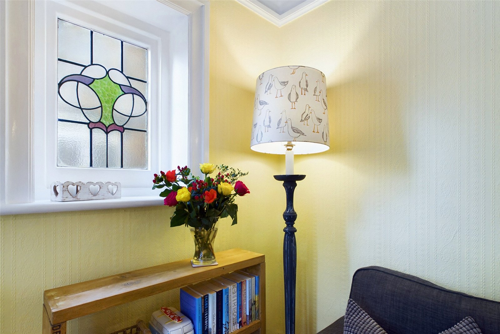The living room is set to the rear of the property and features a Upvc double glazed bay window with door looking over and giving access out to the private rear garden. The room features two stained glass windows to the side and a tiled fireplace which currently houses an electric fire.
