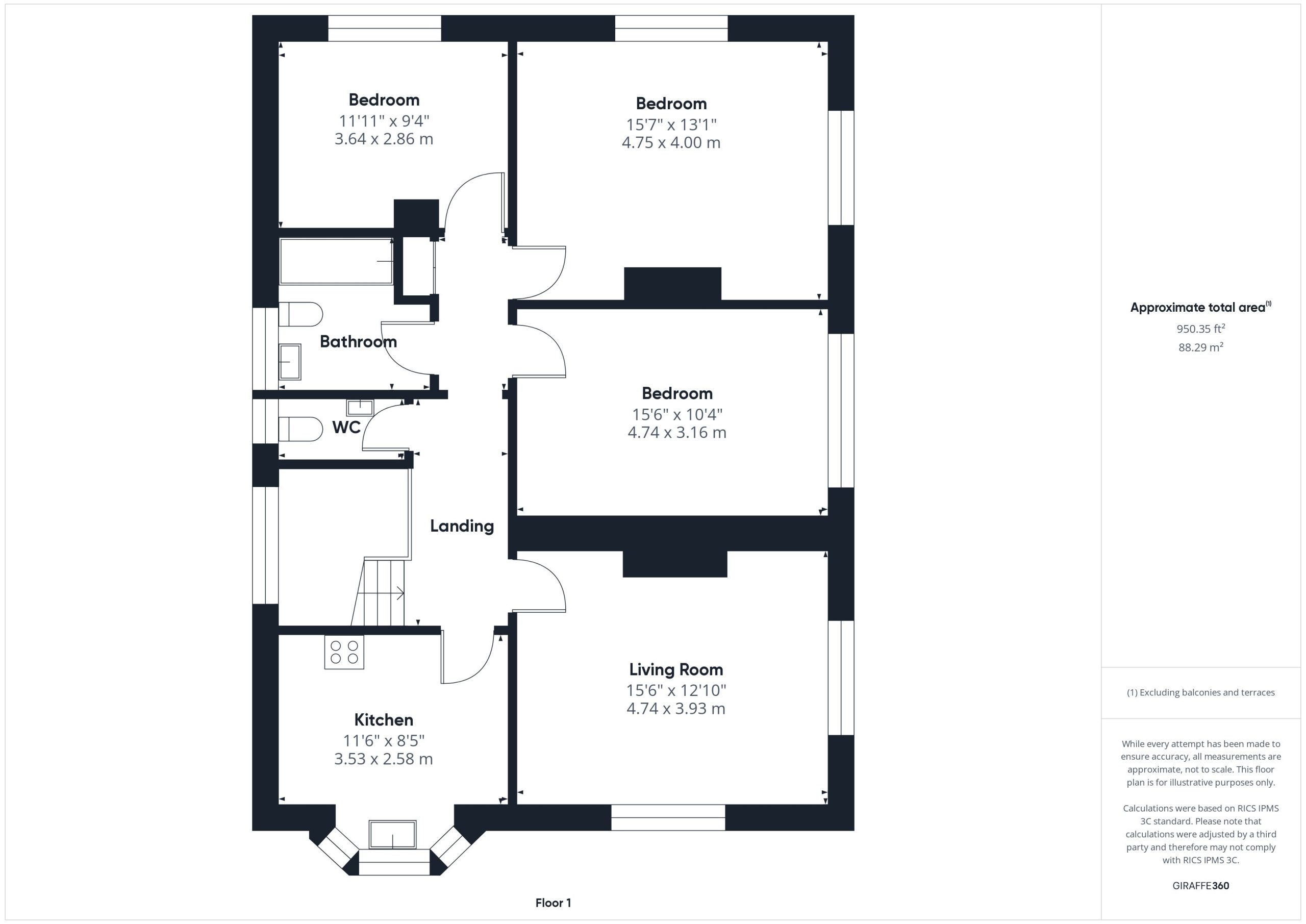 - Three double bedrooms
