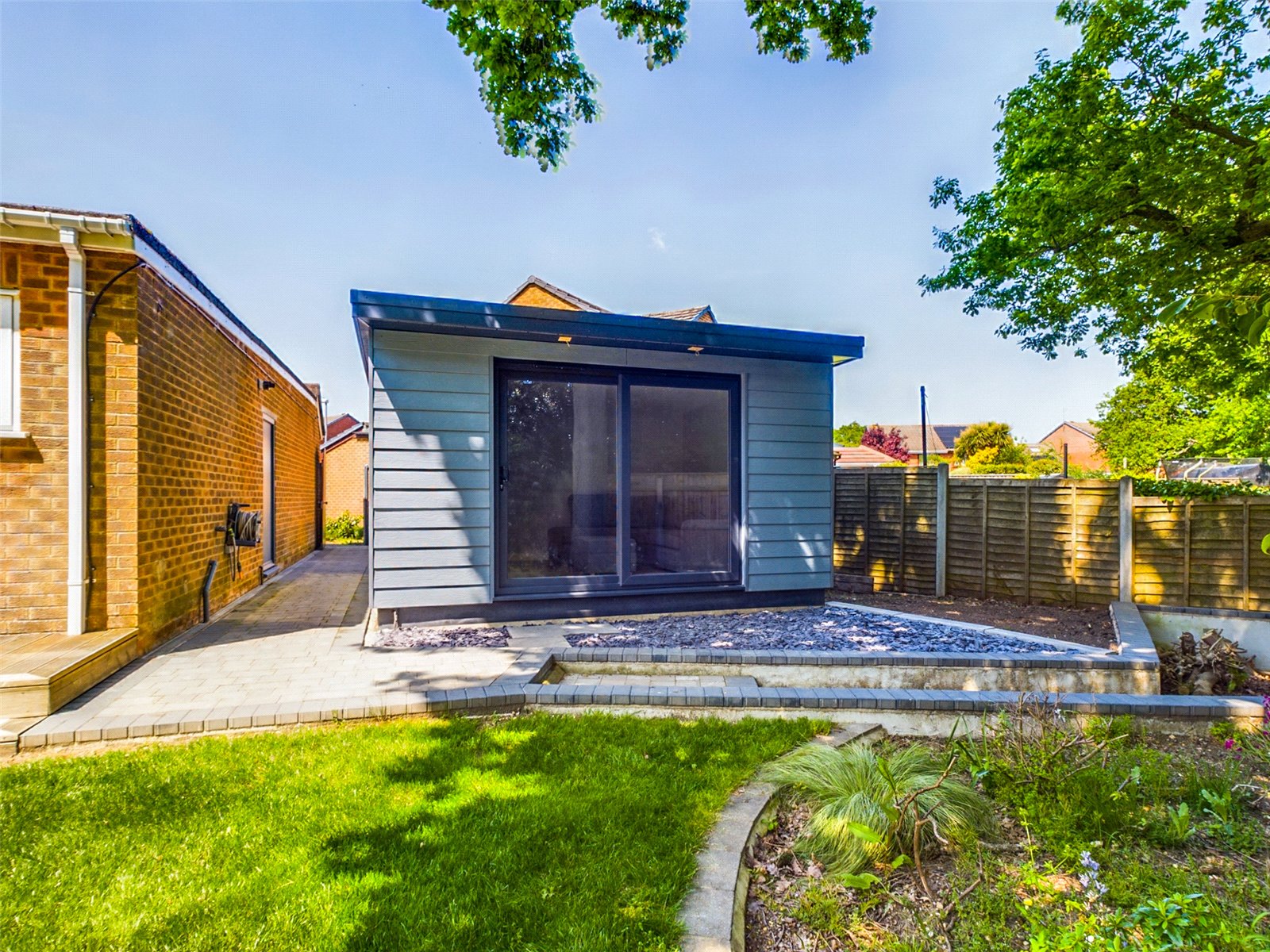 Decking runs the full width of the house. On one side is a patio area, designed initially for a hot tub along with the correct power outlet. On the other side you have storage space and a multi-purpose outbuilding, fully insulated with power and light, and hard wired for internet use. This could act as a gym/home office, or occasional guest accommodation.
