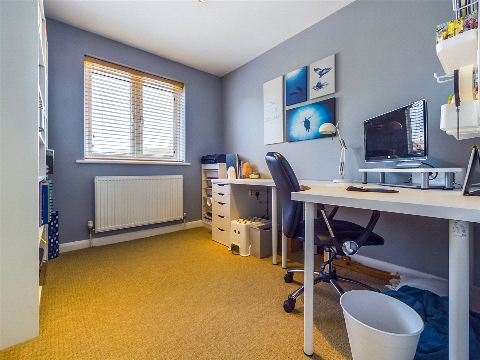 On the first floor are four good size bedrooms, the master has an en-suite shower room and a wall of built in wardrobes. The main bathroom comprises a bath, wash hand basin and WC, has tiled walls and floor, a heated towel rail and an obscured glazed window.