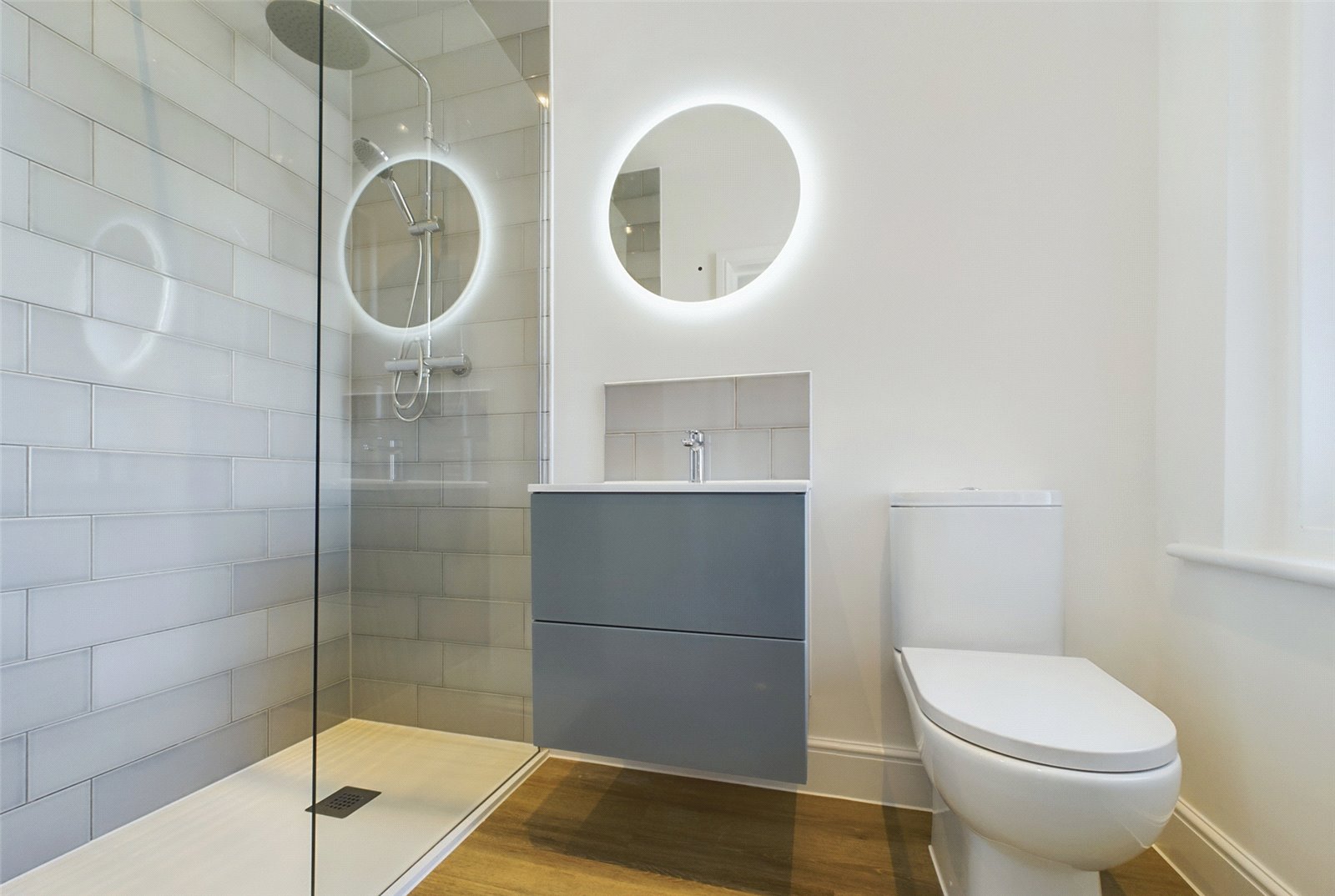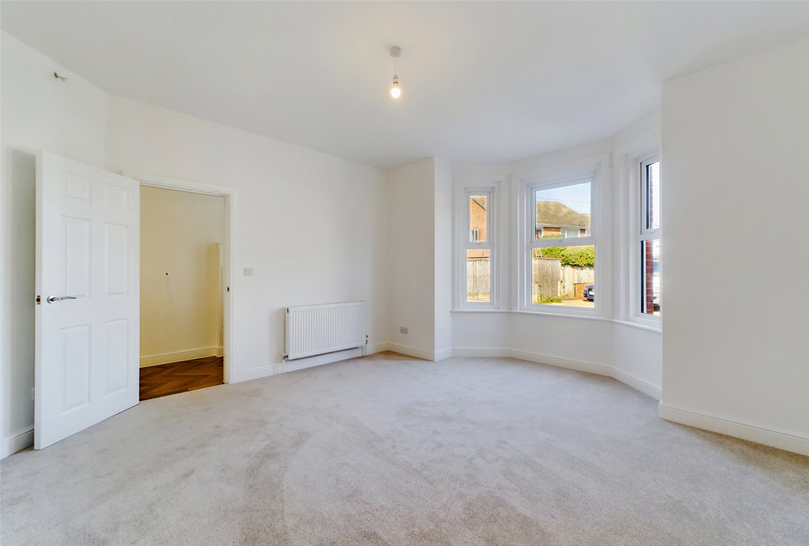 The master bedroom is particularly spacious and features a bay window to the front aspect. It also benefits from a superb en-suite fitted with a low level WC, floating vanity unit with inset sink, and a large walk in rain shower with tiled surround.