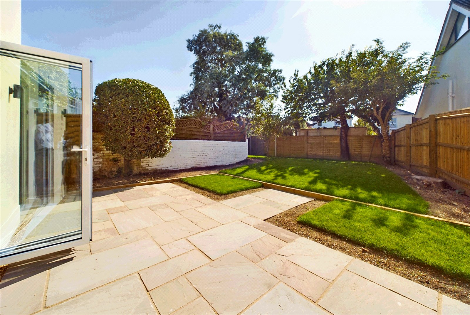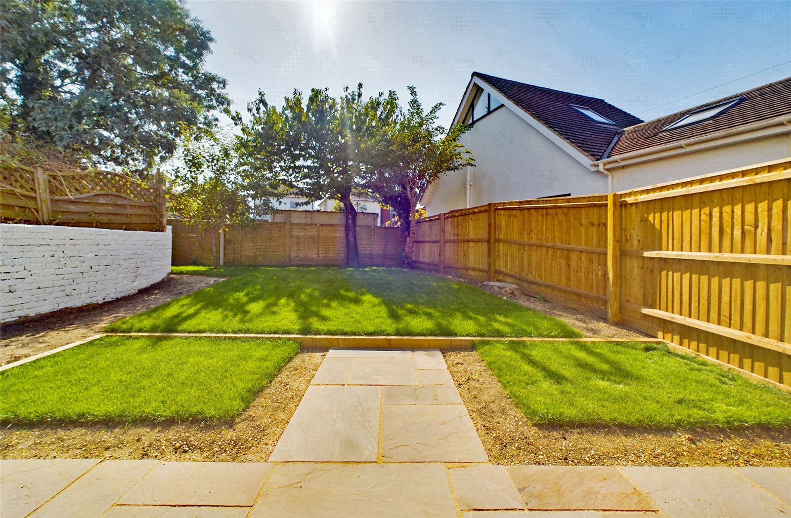 The rear garden has been well landscaped with newly laid lawn and a sandstone patio area abutting the rear of property and bi-folding doors from the kitchen. There are a range of flower/shrub beds ready for planting, and having an L-shape, there is a recessed area of garden which could house a garden shed or similar.