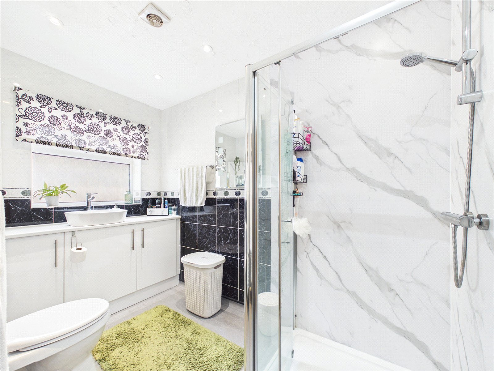 The Shower Room offers a modern suite incorporating a walk-in Shower and 'his and her' sinks set into a vanity unit, further complemented by a window to the side and a heated towel rail. In addition, there is a separate adjacent Cloakroom.
