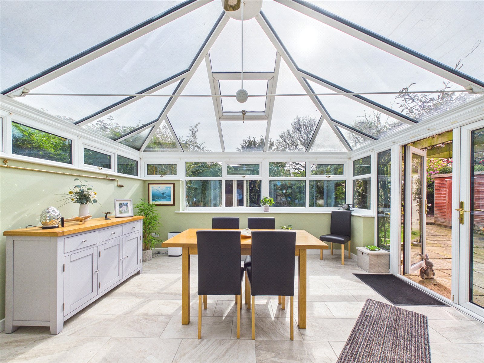 The large Lounge enjoys a dual aspect with a window to the side, a feature fireplace facilitating a recessed wood burning stove and twin doors to an impressive Conservatory, which is of UPVC double glazed construction, based upon a brick built plinth with a pitched roof over, windows provide a pleasant outlook over the Rear Garden with twin doors providing external access.