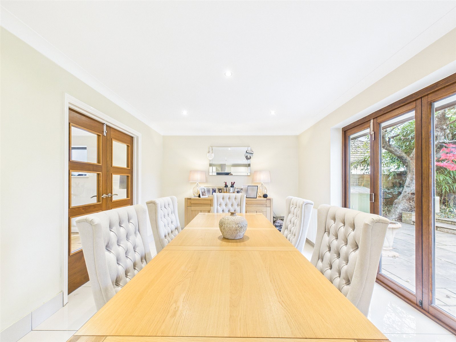 The vast open-plan Kitchen/Dining Room is situated to the rear of the property with a window affording an excellent outlook over the Rear Garden, whilst tri-fold doors provide external access, The modern Kitchen offers a comprehensive range of gloss fronted cupboard and drawer units, complemented by a contrasting granite work surface, there is also a matching centre island. The Kitchen benefits from a fitted double oven, an inset gas hob with a contemporary extractor canopy over, a fitted dish washer and space for an American-style 'fridge/freezer'. Furthermore, there is a door to a useful Utility Room with an additional work surface and space and plumbing for additional Kitchen appliances.