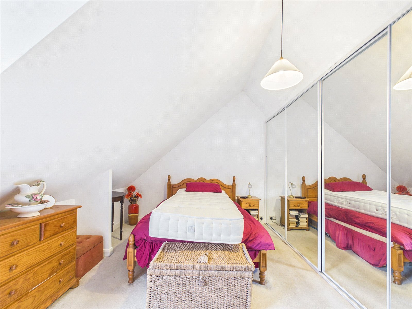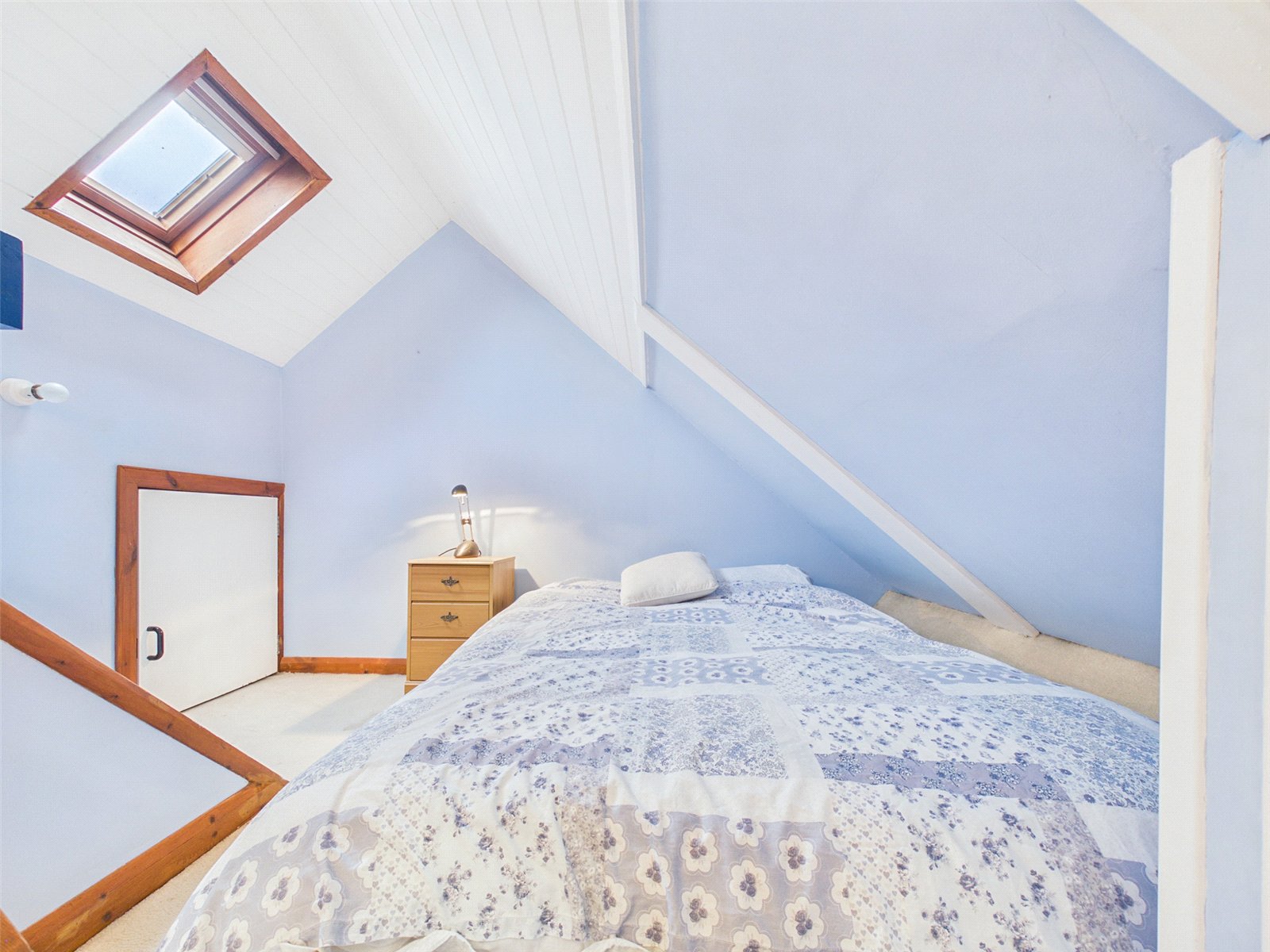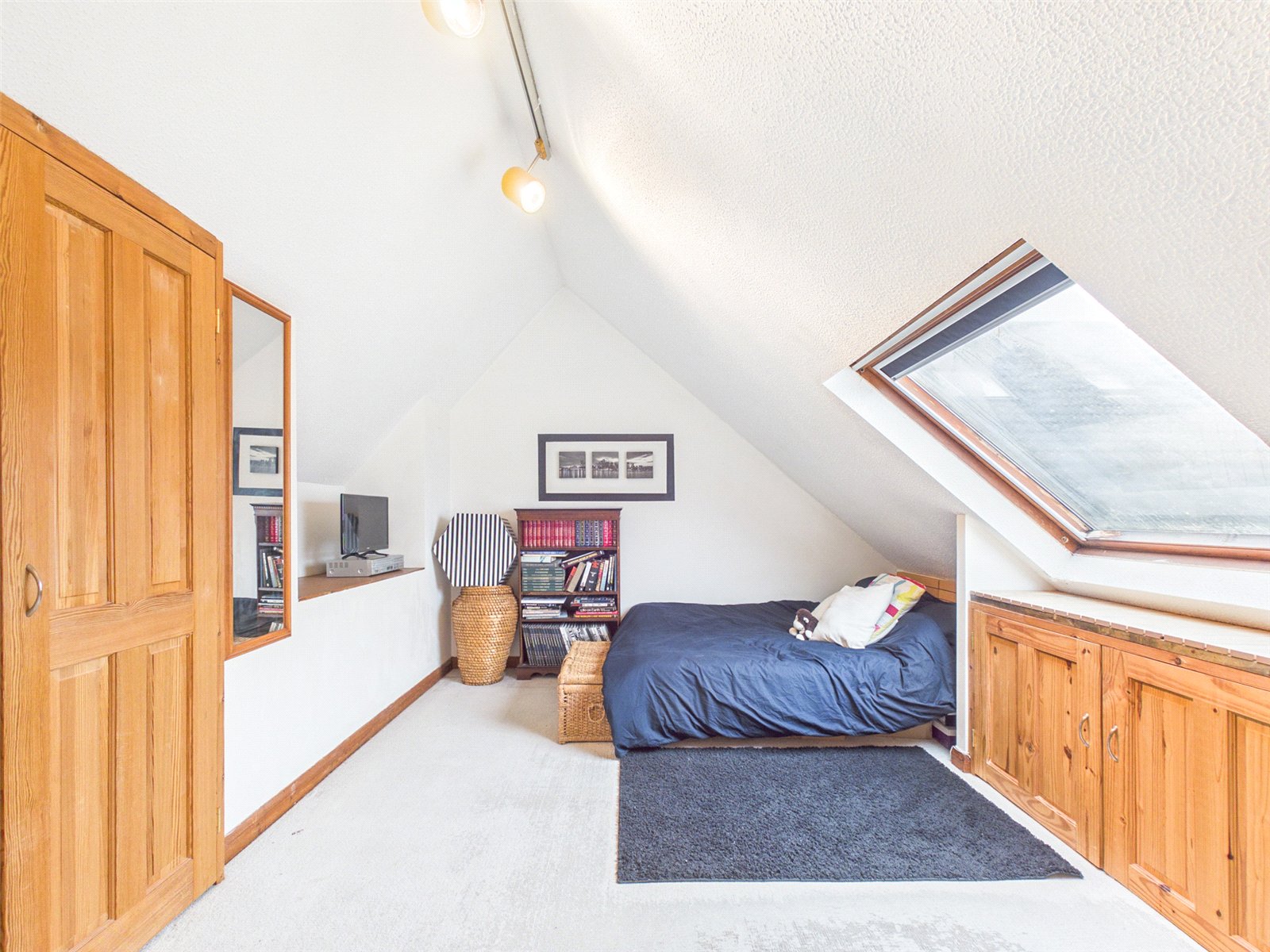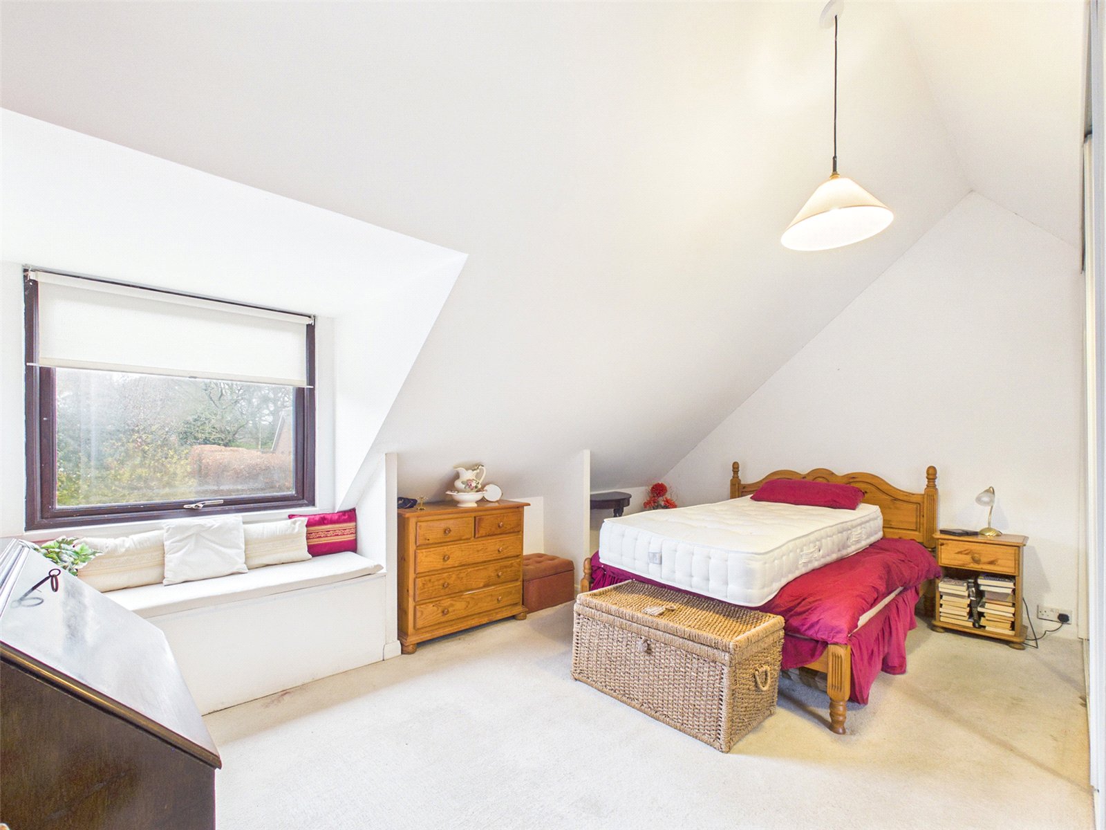 From the first floor landing, a further staircase leads to Bedroom Three, a spacious split level room with a feature bay window to the side and a built-in cupboard.