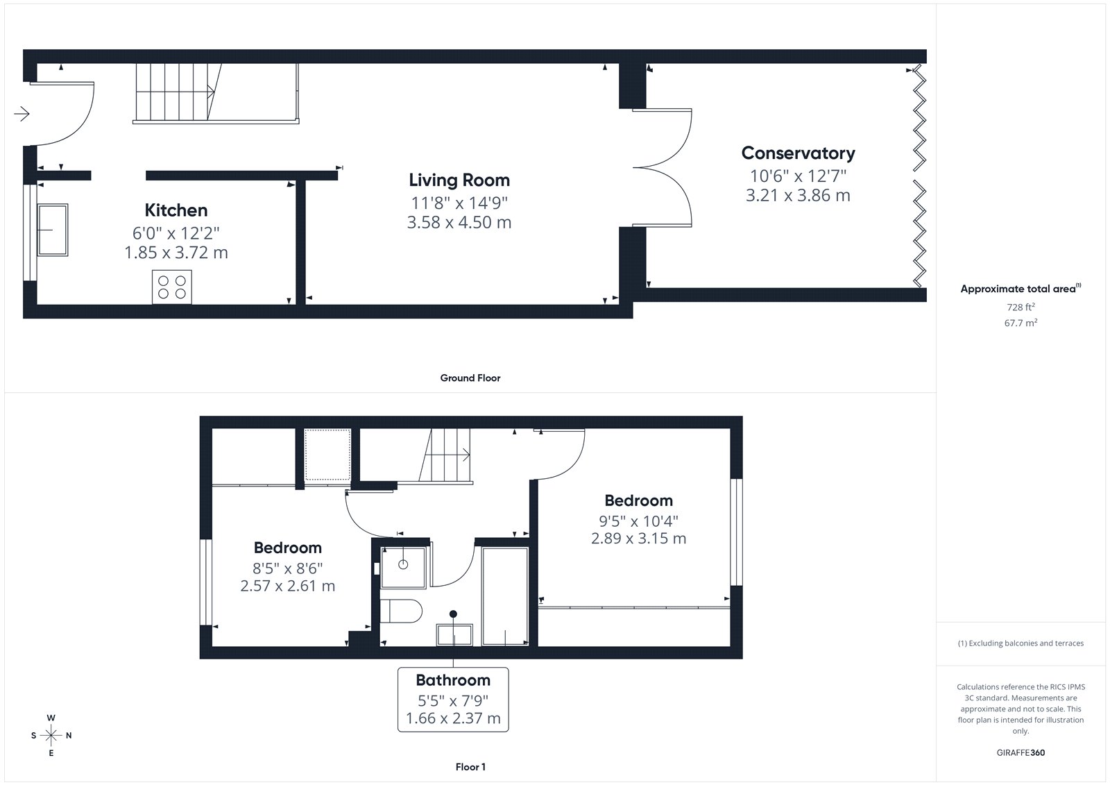 Upstairs, the property comprises two bedrooms, a particular feature is the generous amount of storage available in both bedrooms. A centrally located family bathroom with separate shower and bath serves both rooms.