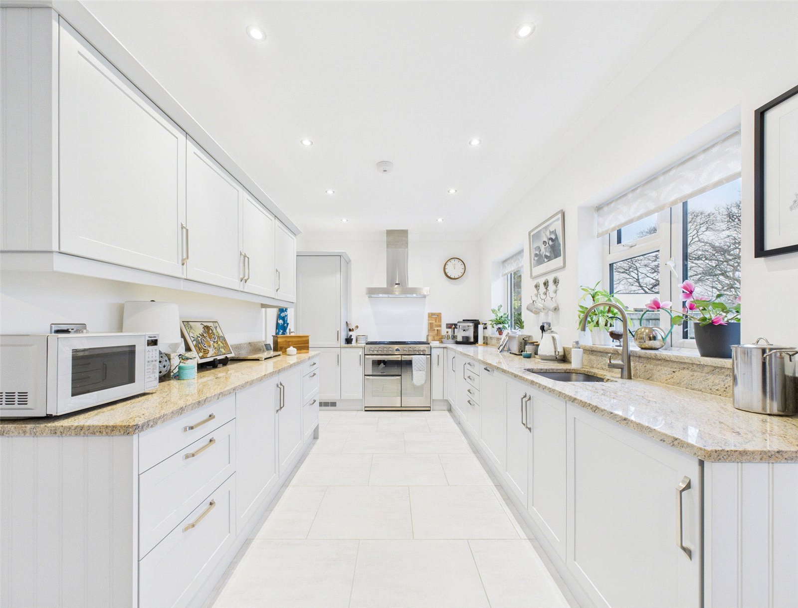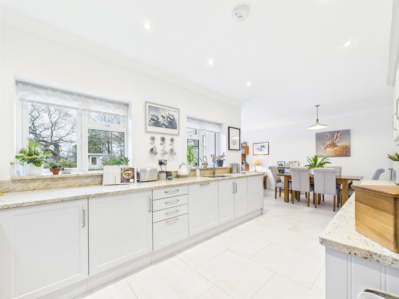 At the hub of the home, a spacious open plan, L-shaped Kitchen/Dining/Day Room enjoys an attractive outlook over the rear Garden with two sets of bi-fold doors providing external access. A high quality fitted Kitchen offers a large selection of cupboard and drawer units complemented by Granite work surfaces, a 'Stoves' range style oven and high quality integrated appliances. This delightful room further benefits from underfloor heating.
