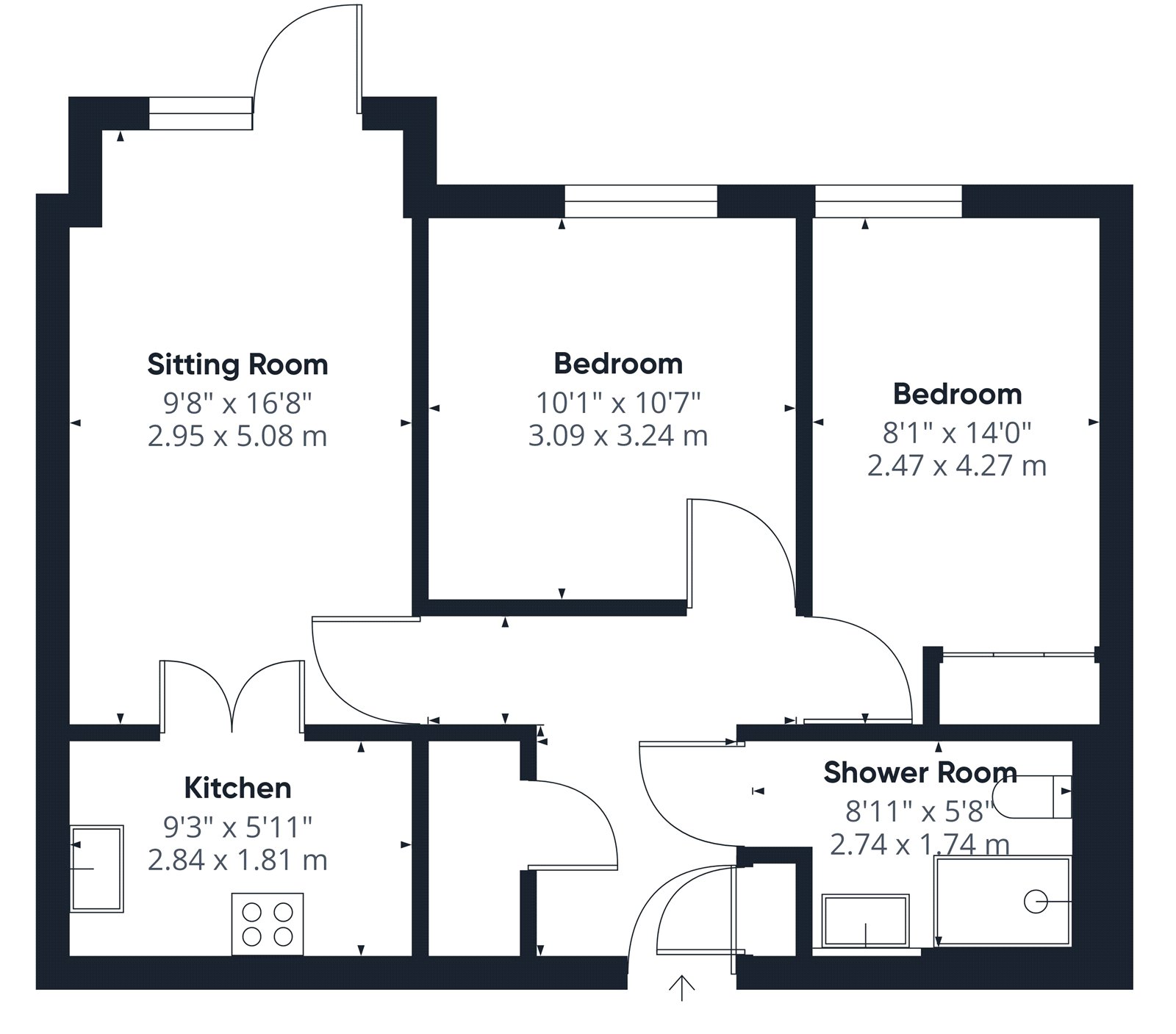 This particular apartment can be located on the ground floor on the east side. Private front door into entrance hall. Airing cupboard and further storage cupboard.