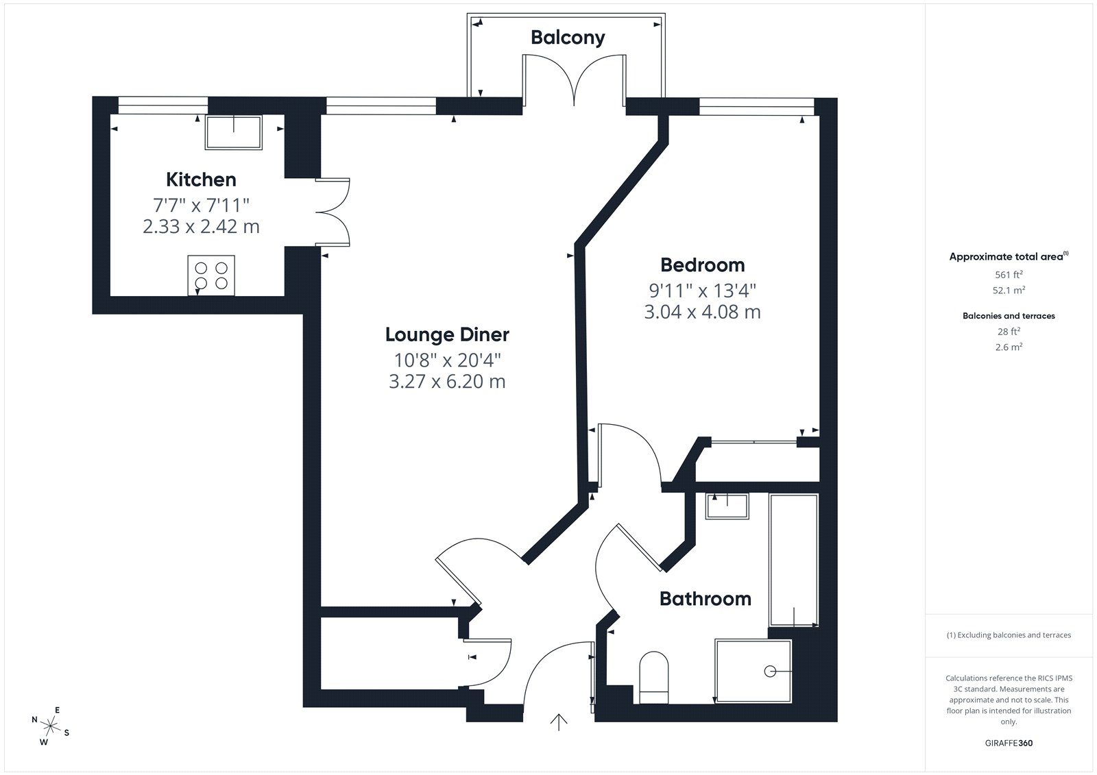 The bright and airy lounge diner is particularly nice in this apartment. There is an electric fire place with surround, and double doors leading on the balcony, where there is space for a small table and chair. Being on the 2nd floor makes for a pleasant elevated outlook, and being on the easterly side you get all the morning sun and an aspect of the southerly sunshine too. This side of the building is popular as it allows you to see the daily comings and goings of the development.