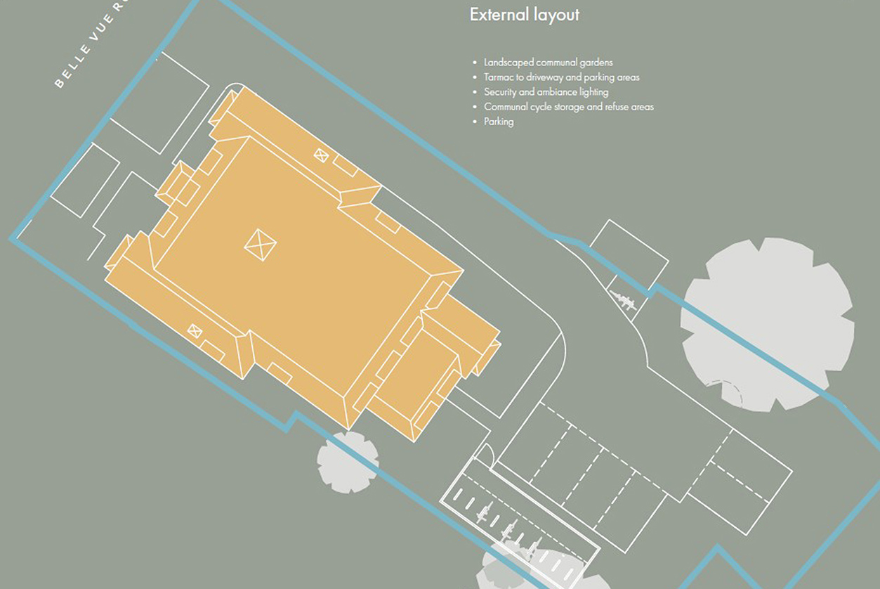 The development comprises of 6 one-bedroom apartments, 6 two-bedroom apartments, and a two bedroom maisonette (The Lodge) which has its own private entrance and patio area giving ‘house like’ accommodation.